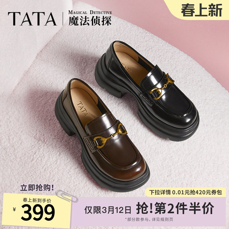 📚 李兰迪同款TATA他她魔法侦探乐福鞋女英伦风黑色小皮鞋厚底JK鞋子