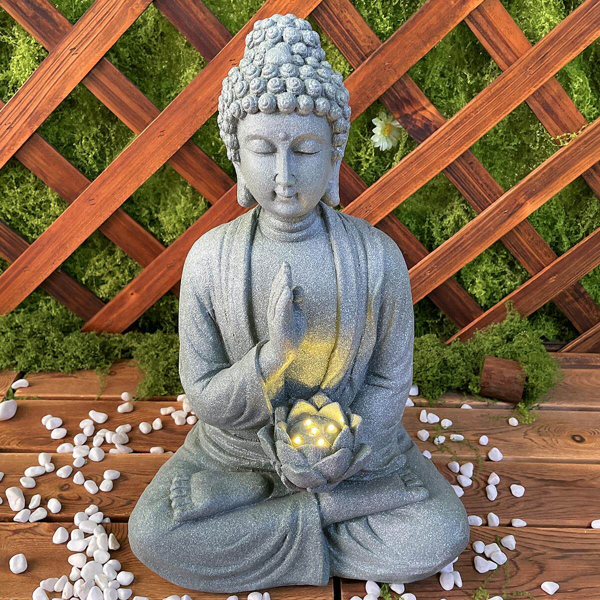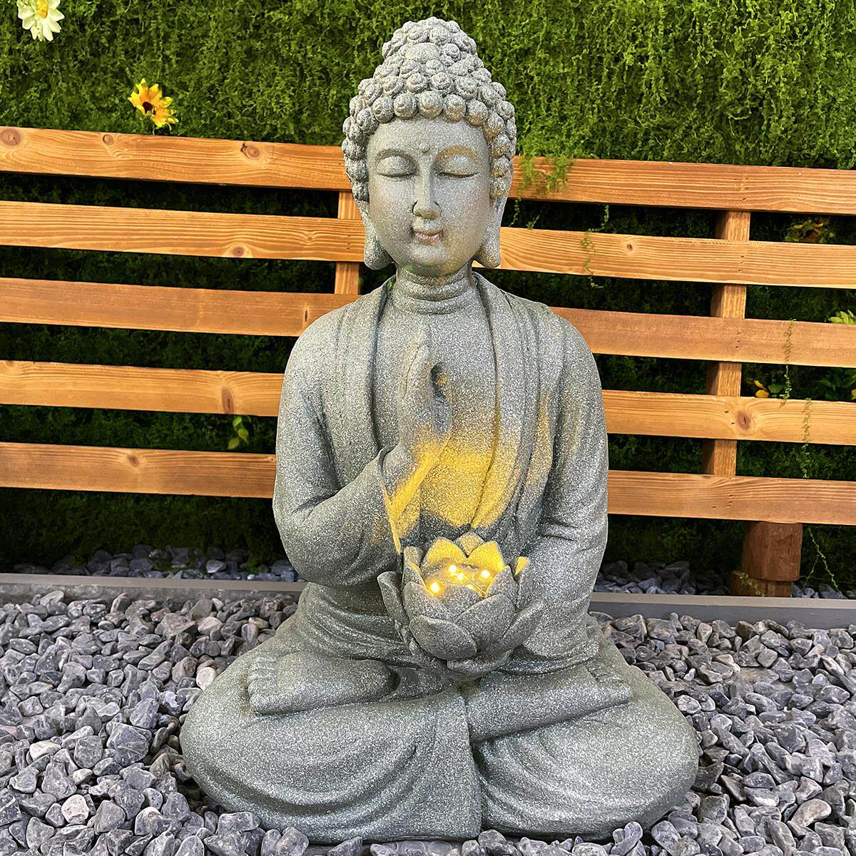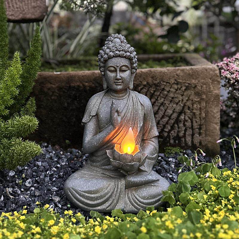 📚 新中式佛像掌莲灯花园庭院造景太阳能灯书房玄关整体橱柜禅意装饰