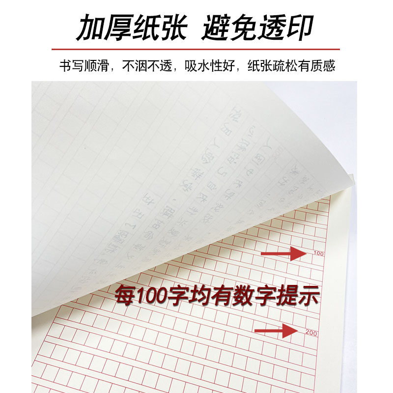 📚 小学生240格初中生300格高中400格专业作文纸考研写作纸600格申论考试专用红色小方格本党员申请书文加厚稿纸