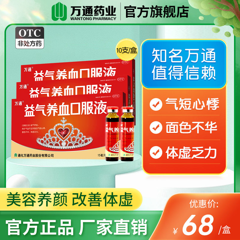 📚 3盒装万通益气养血口服液15ml气血不足女人调理体虚乏力面色不华
