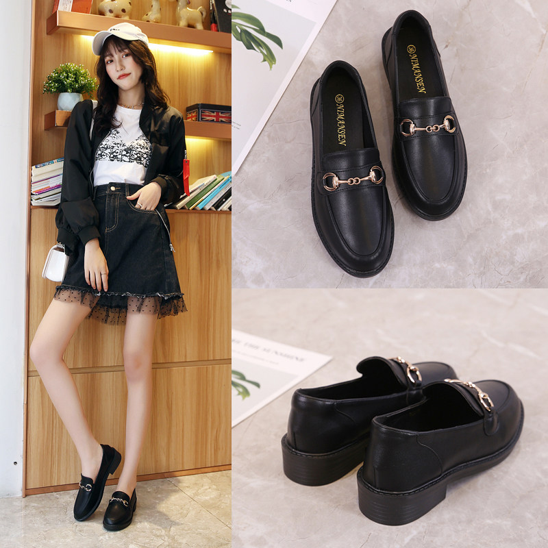 📚 英伦风小皮鞋平底鞋子黑色工作单鞋女鞋2J021春秋季新款爆款豆豆