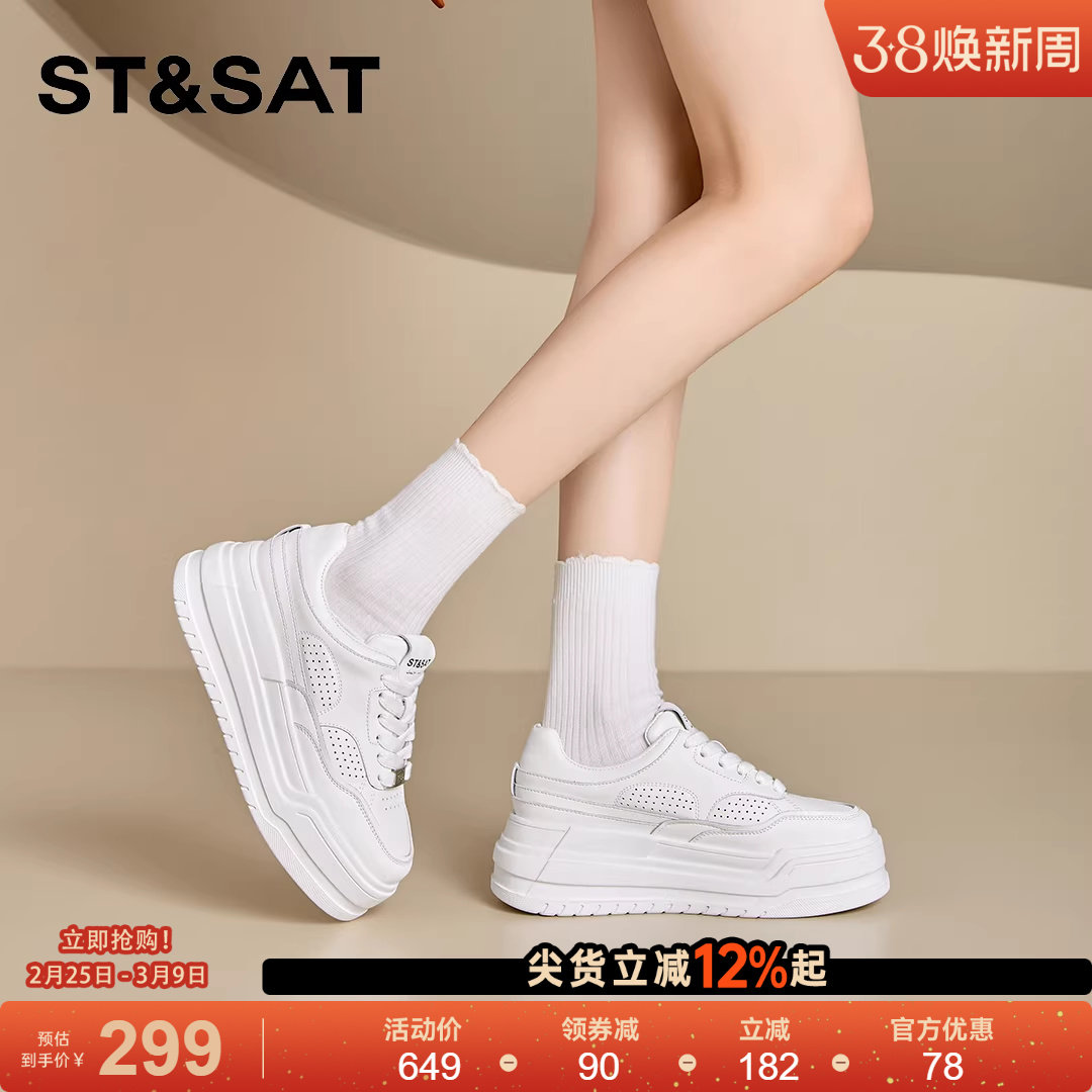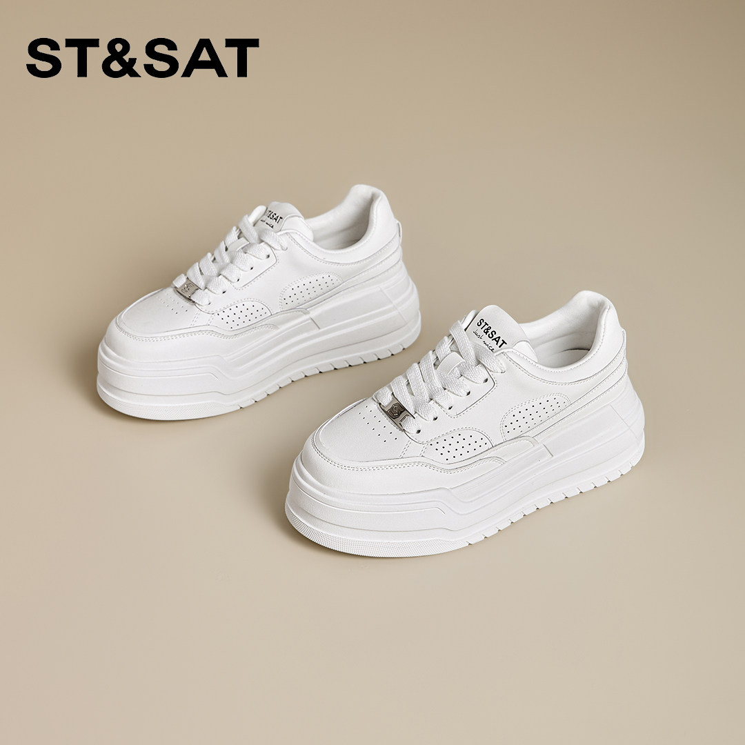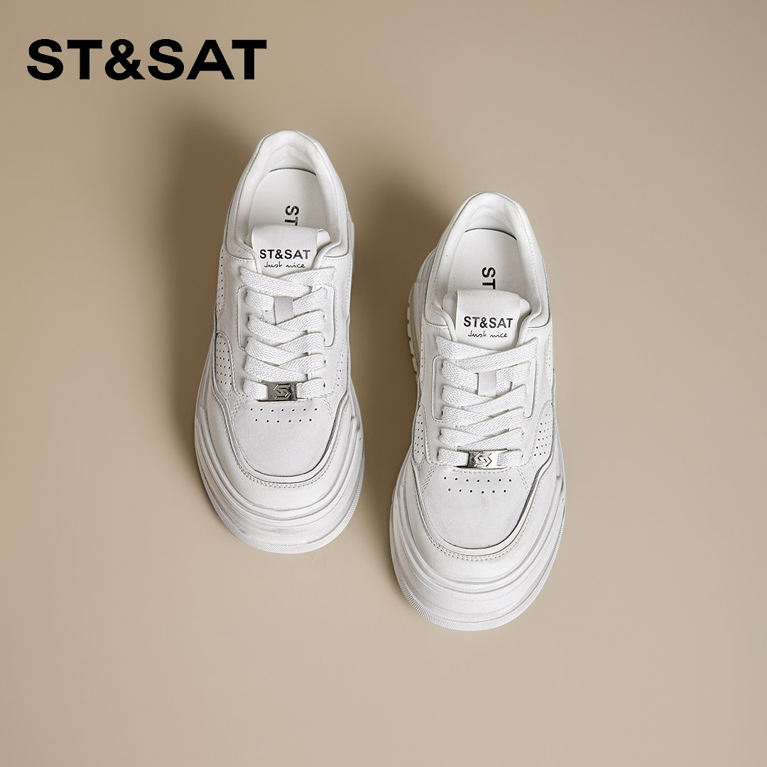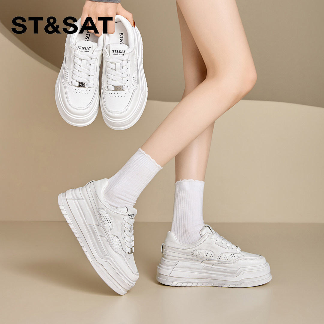 📚 星期六擦色厚底增高羊皮内里小白鞋女2026年春新款系带休闲板鞋女