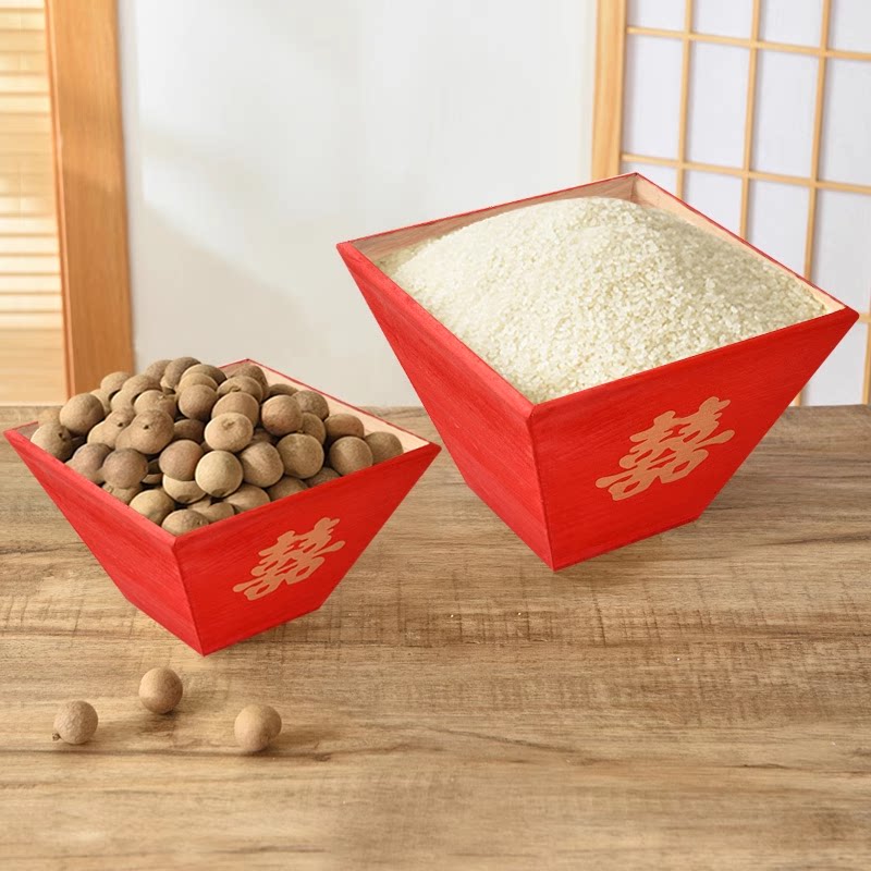 📚 实木日进斗金仿古米斗客厅创意摆件老式结婚用升四方升子开张礼品