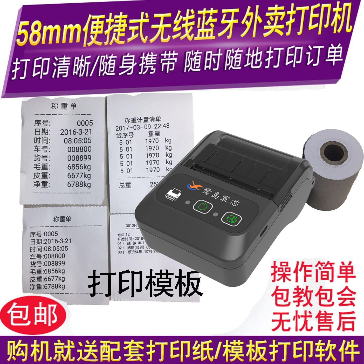 💥超值!58mm便携式蓝牙热敏票据打印机,让进销存销售单过磅单打印更高效💪