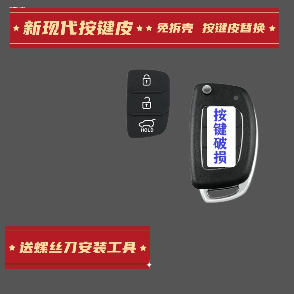 📚 适用现代IX35索九朗动名图IX45新胜达汽车遥控器按键皮钥匙替换