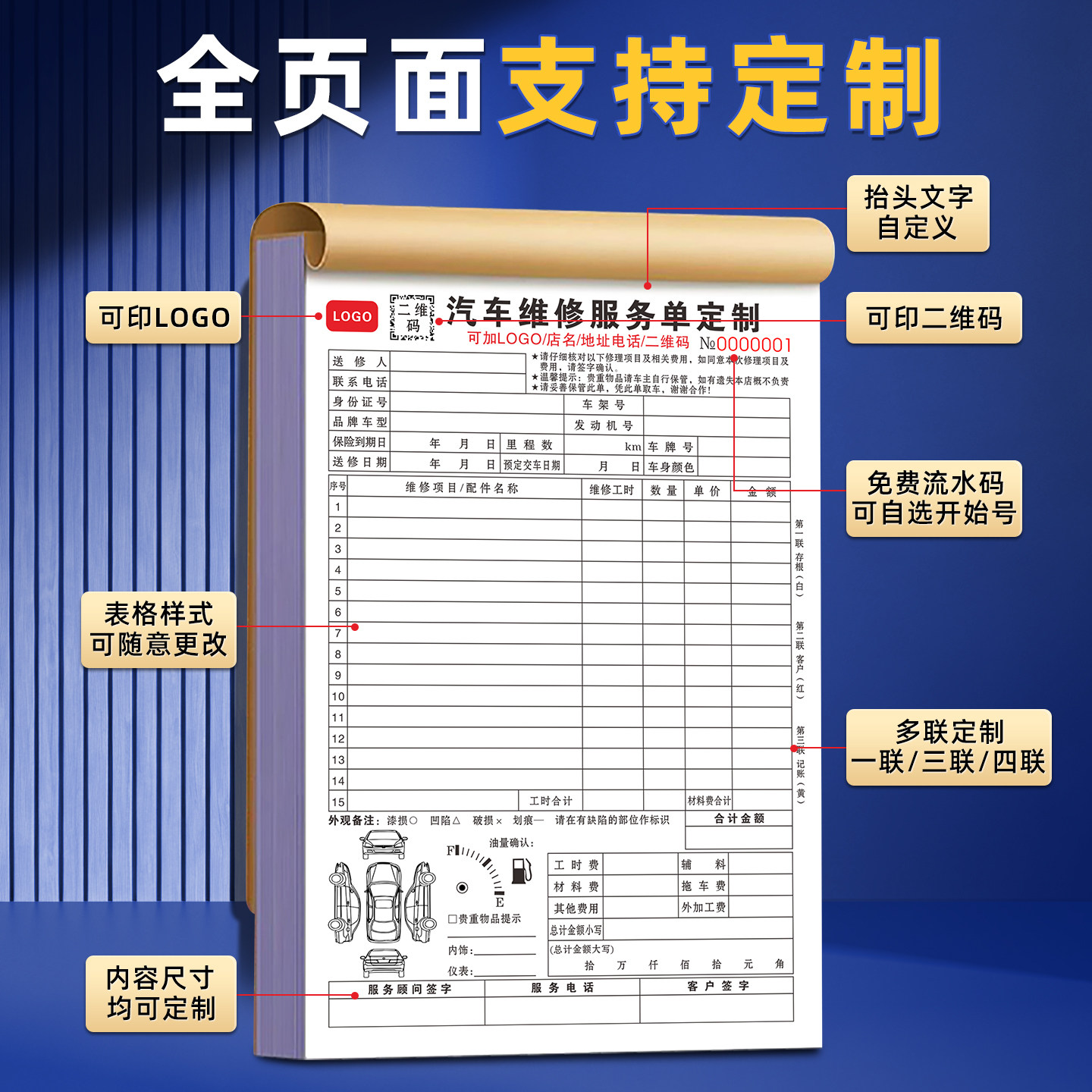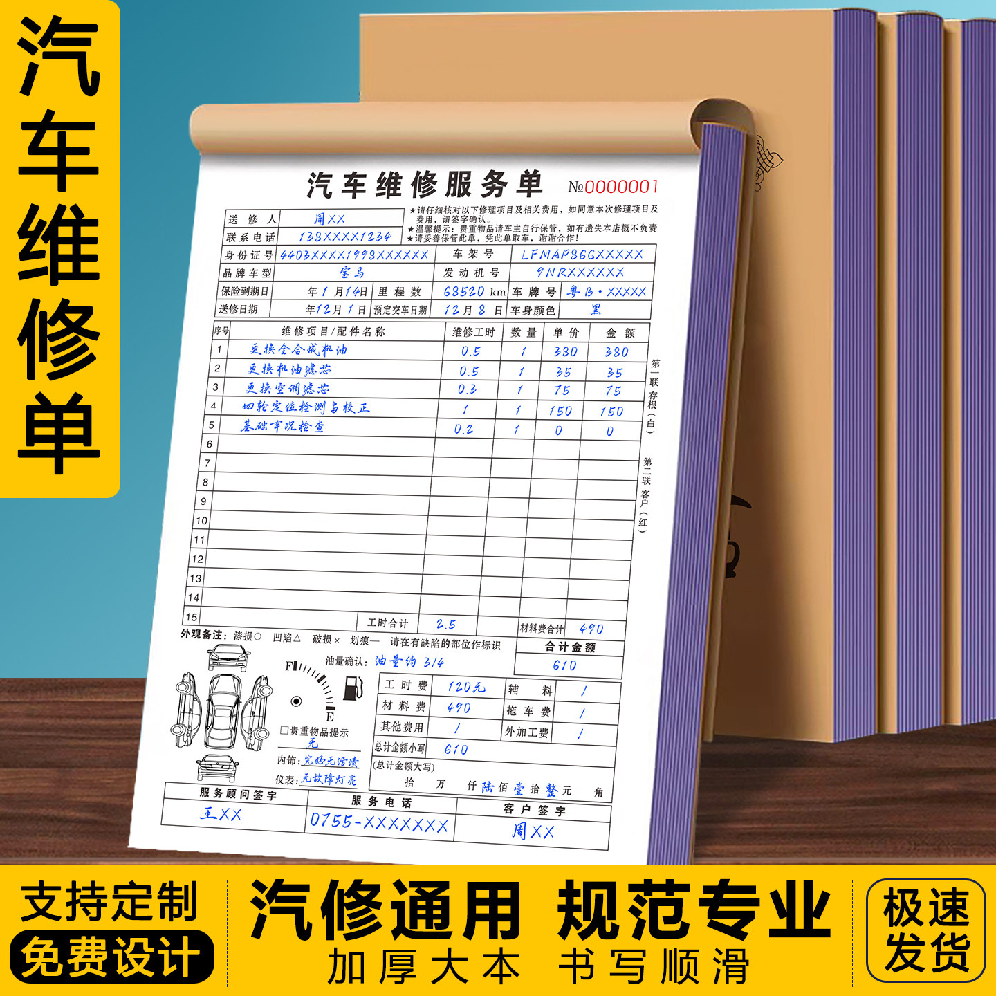 📚 汽车维修单三联汽修厂修车服务销售清单车辆接车修理保养工单3联