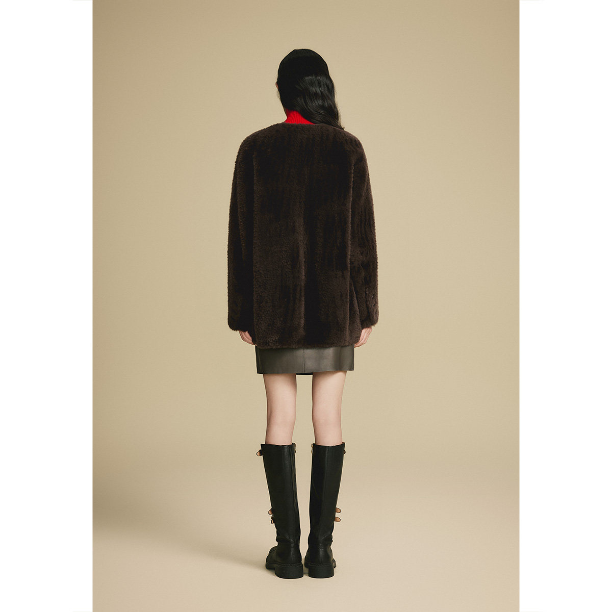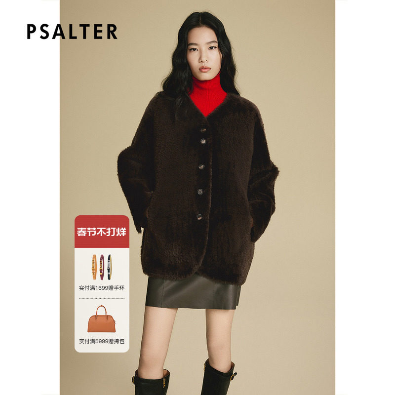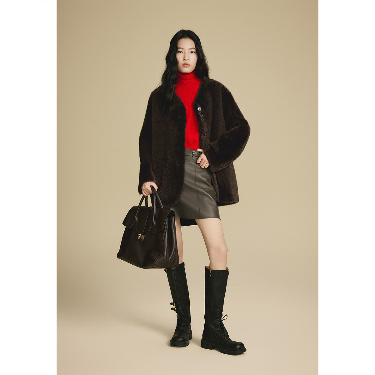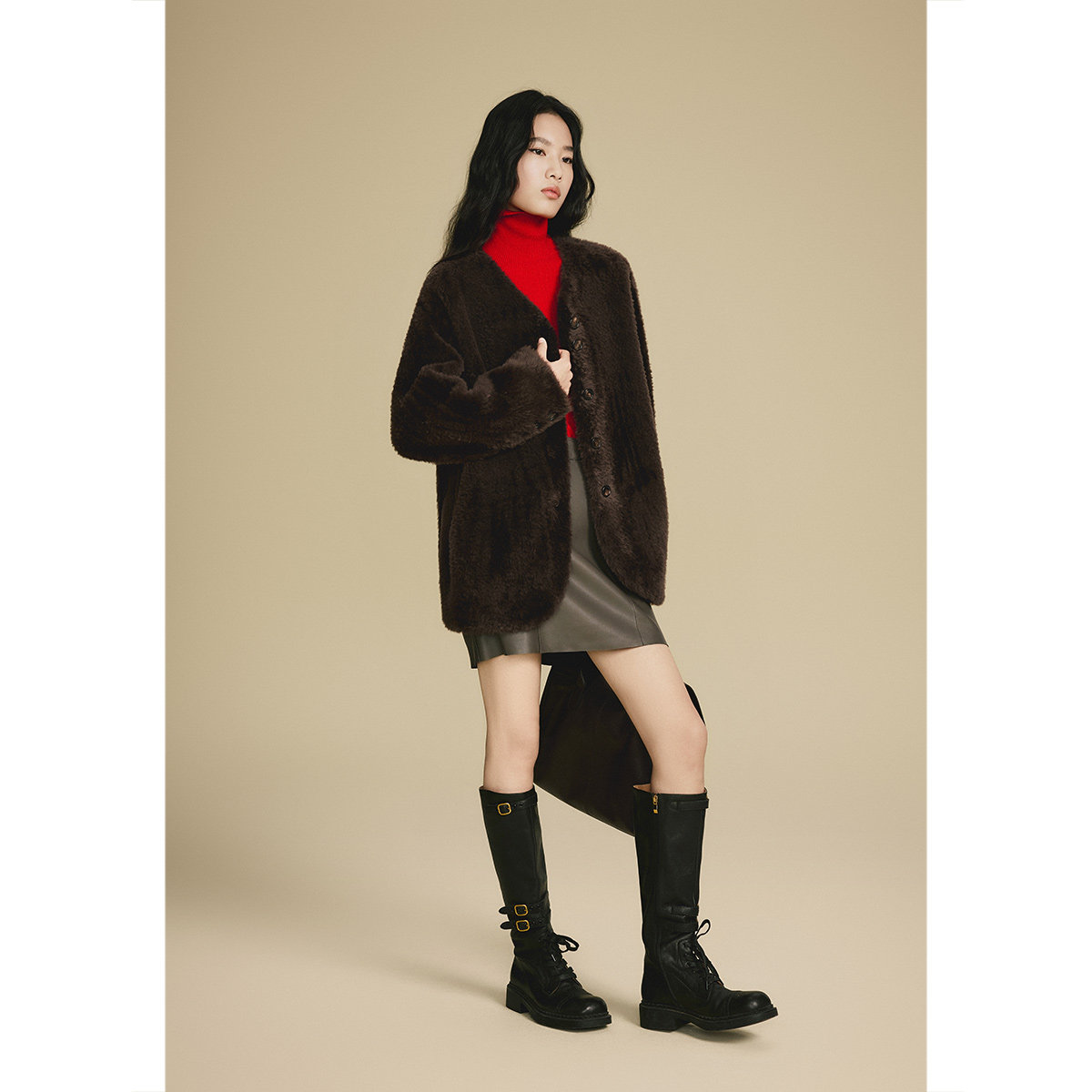 📚 诗篇专选皮毛一体小三角V领羊毛革皮草外套2025冬款