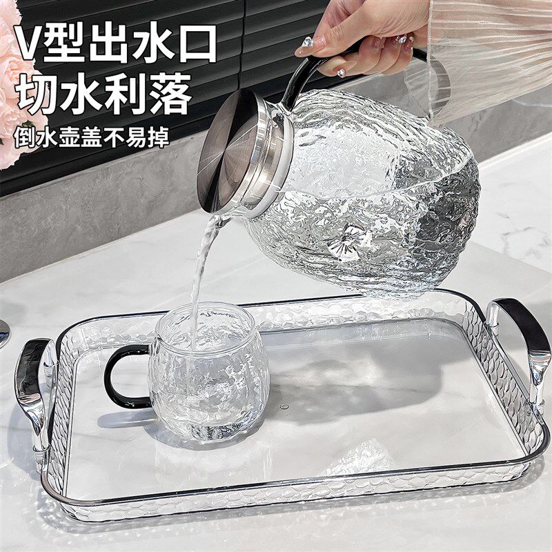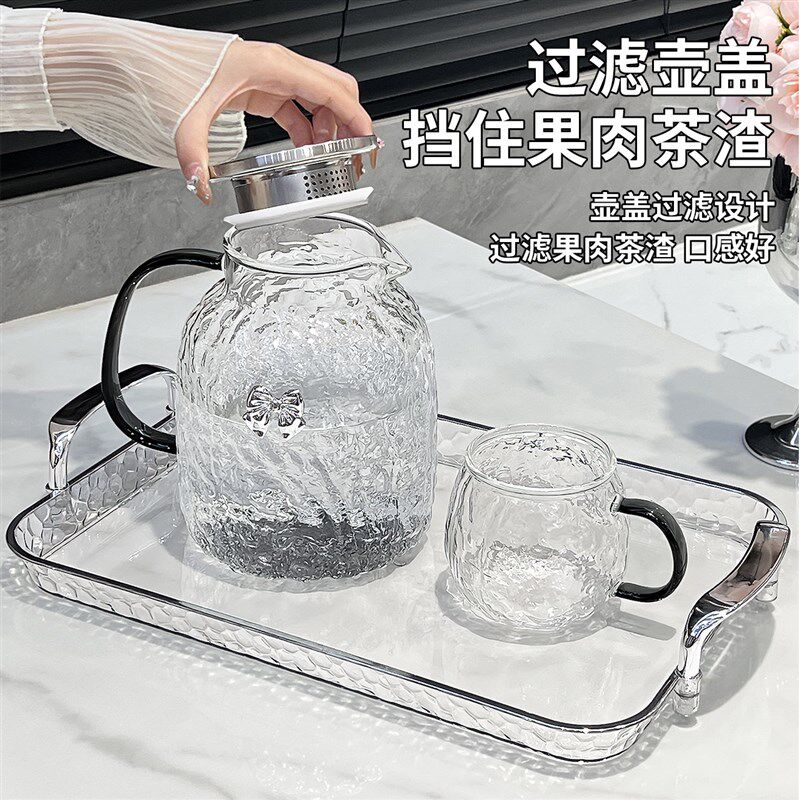 📚 水波纹玻璃冷水壶耐高温s家用耐热凉水壶大容量凉白开水杯茶壶套