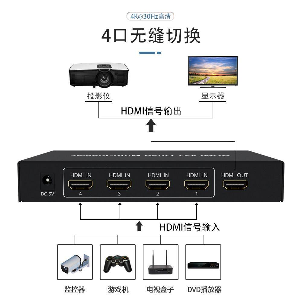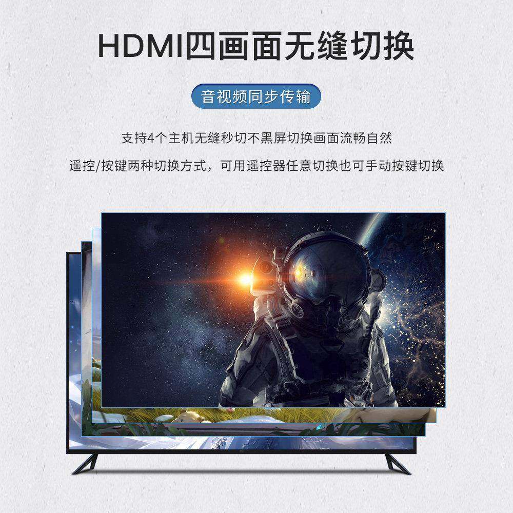 📚 高清4K HDMI 无缝切换器四进一出 4进1出 4x1带遥控 无黑屏专业级