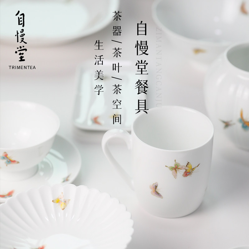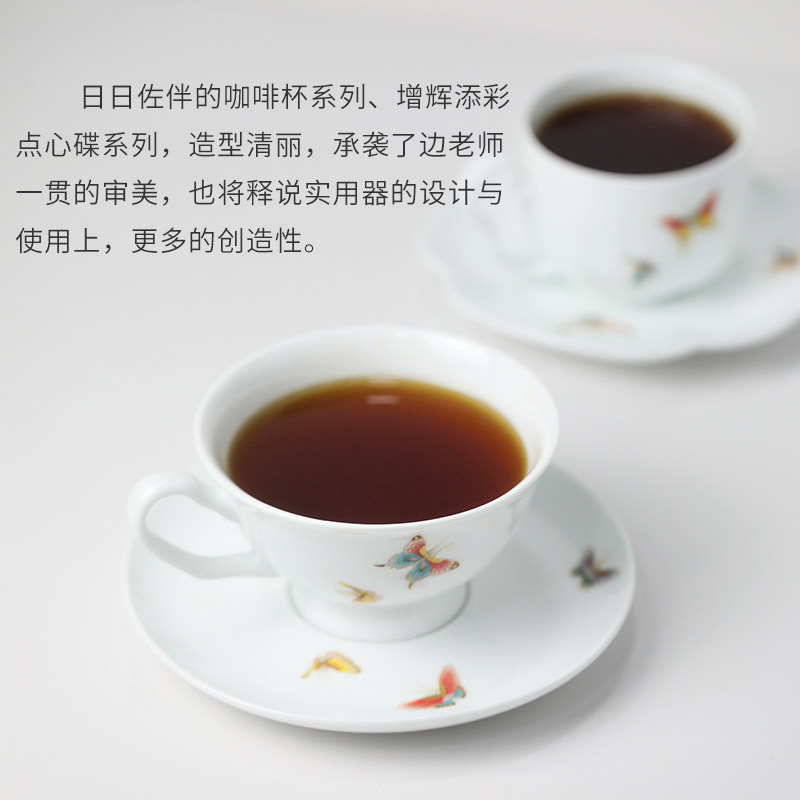 📚 自慢堂主理人边正设计手绘釉中彩蝴蝶餐具马克杯陶瓷点心盘咖啡杯
