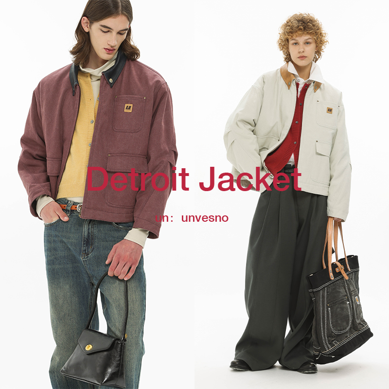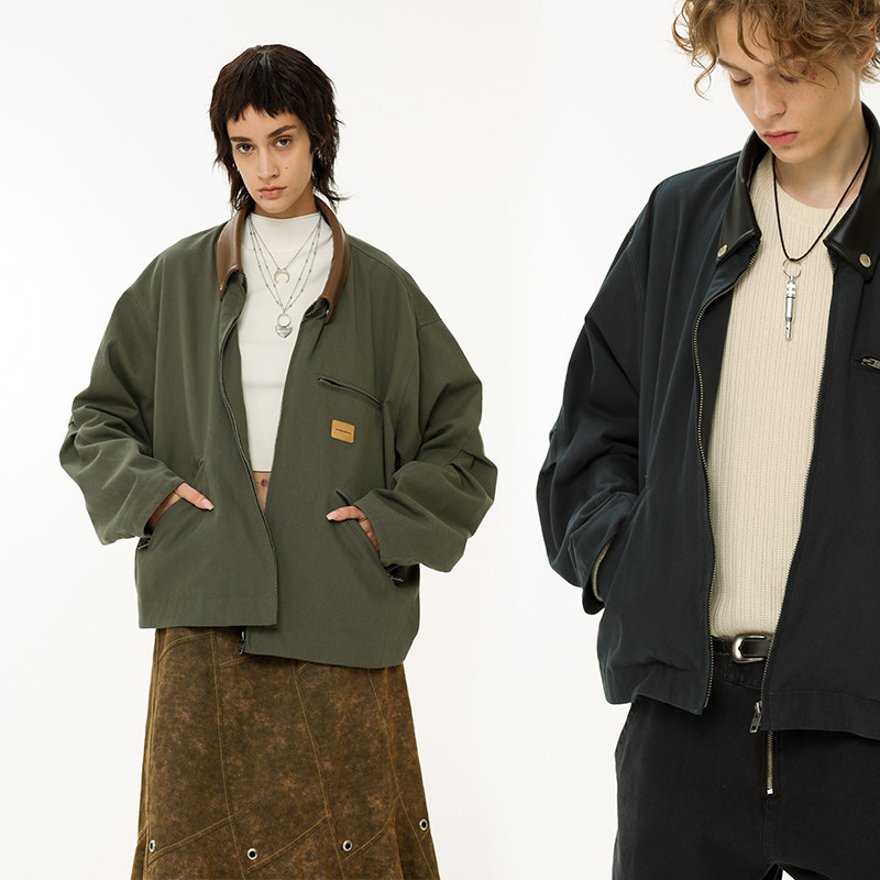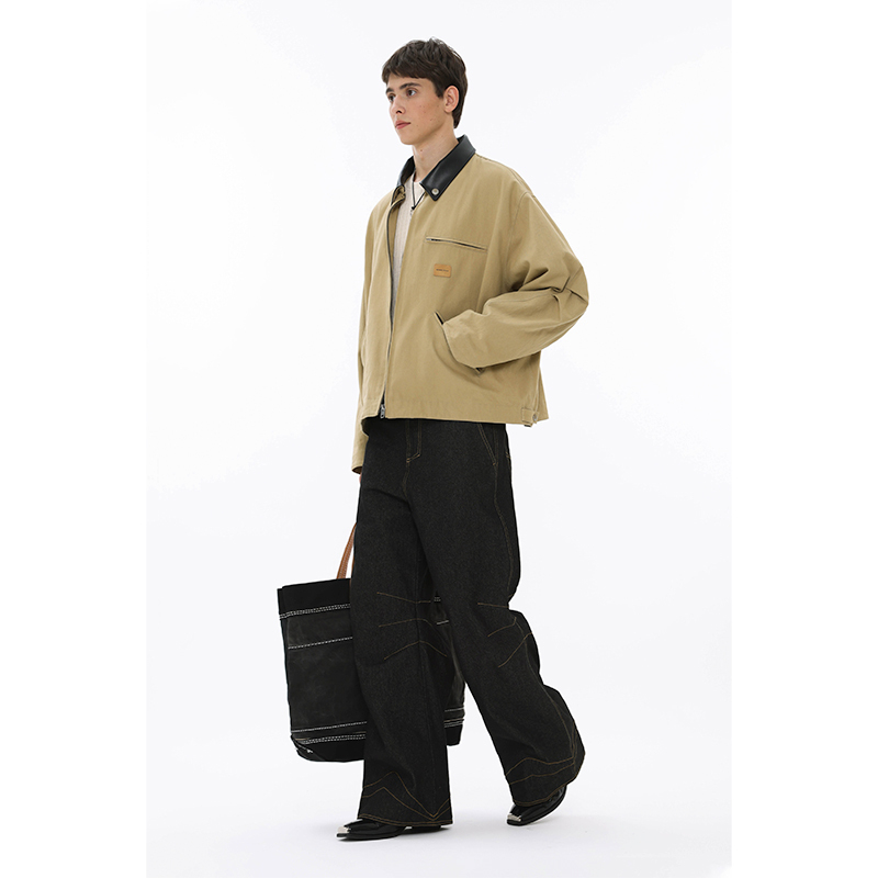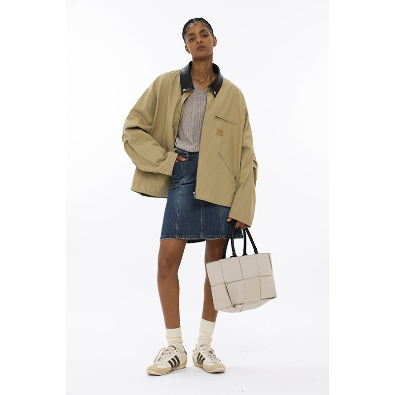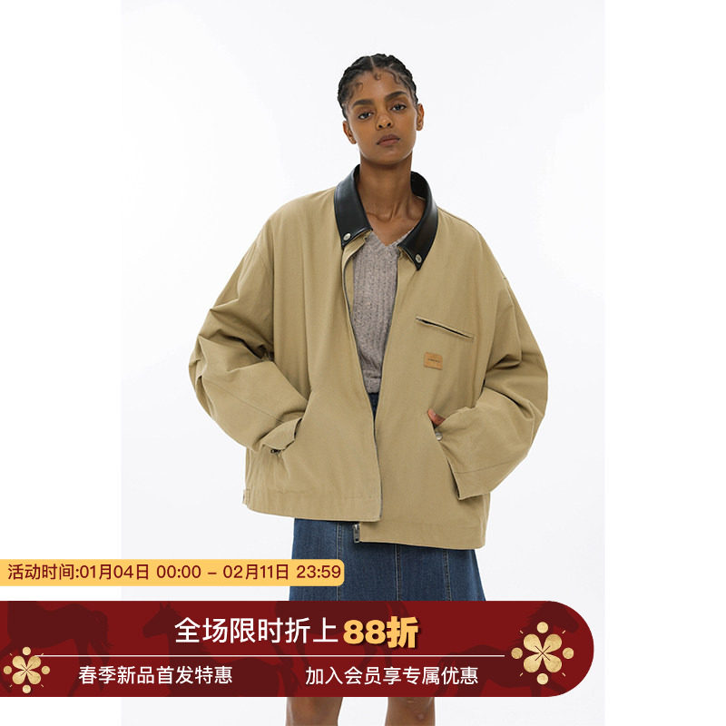 📚 Unvesno(UN) 巴恩风秋冬廓形重磅短款洗水工艺皮领工装夹克外套秋