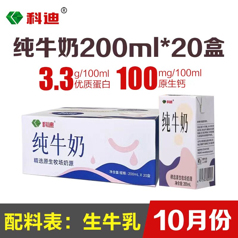 📚 10月份科迪纯牛奶原生牧场200ml盒装学生营养早餐奶整箱批发特价