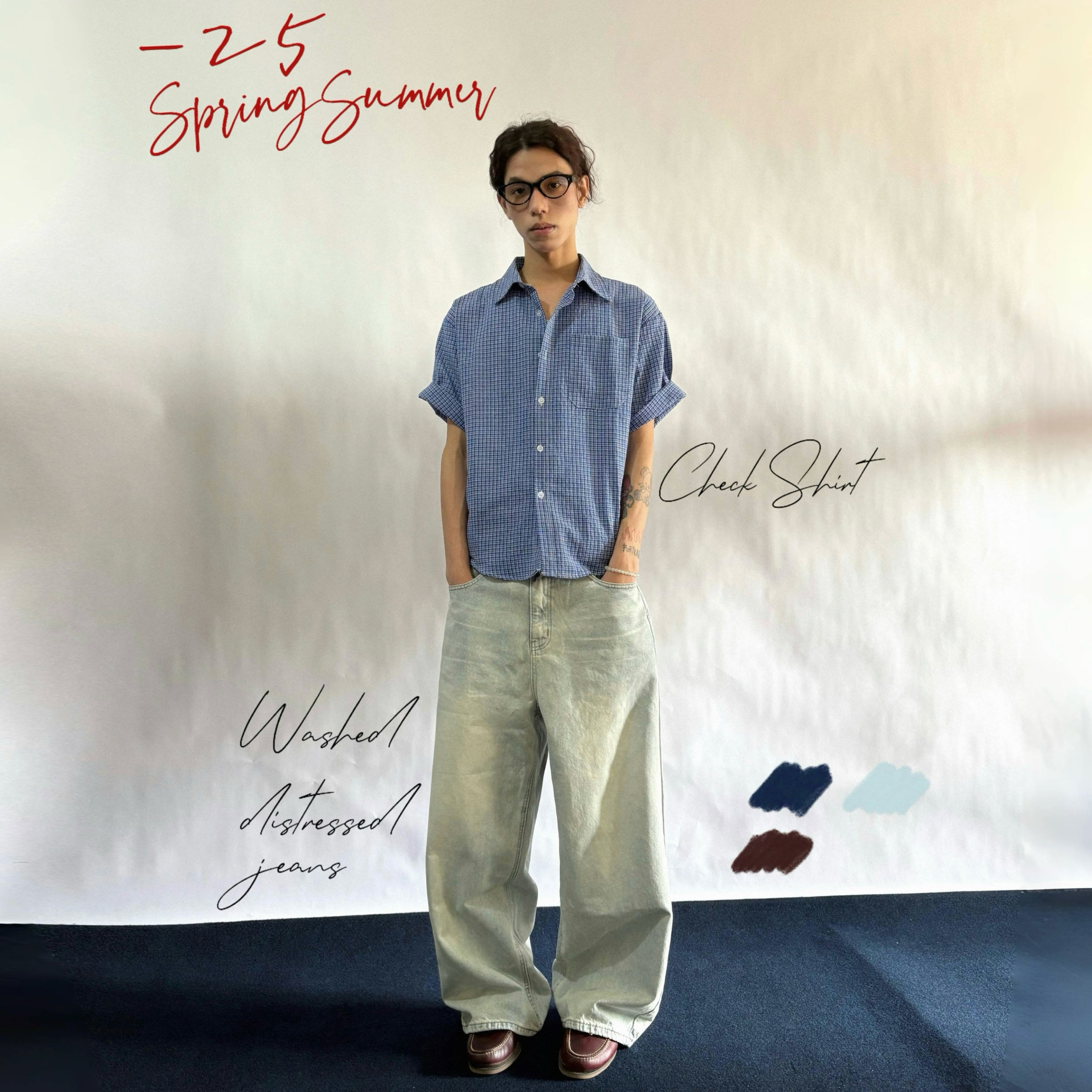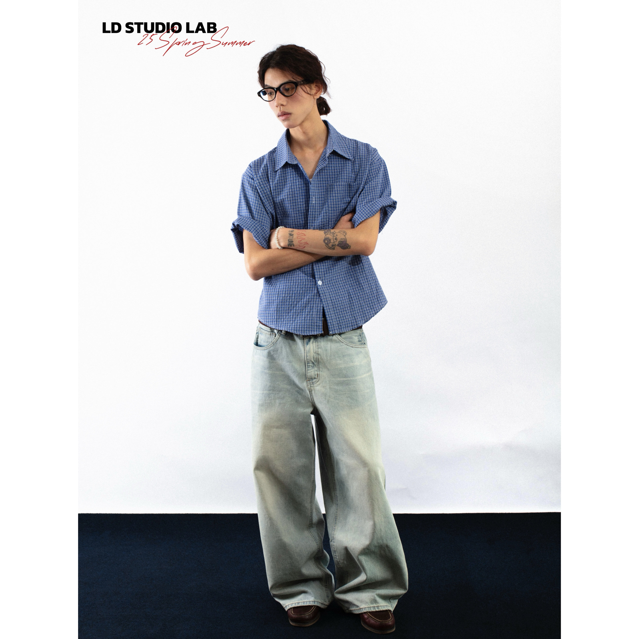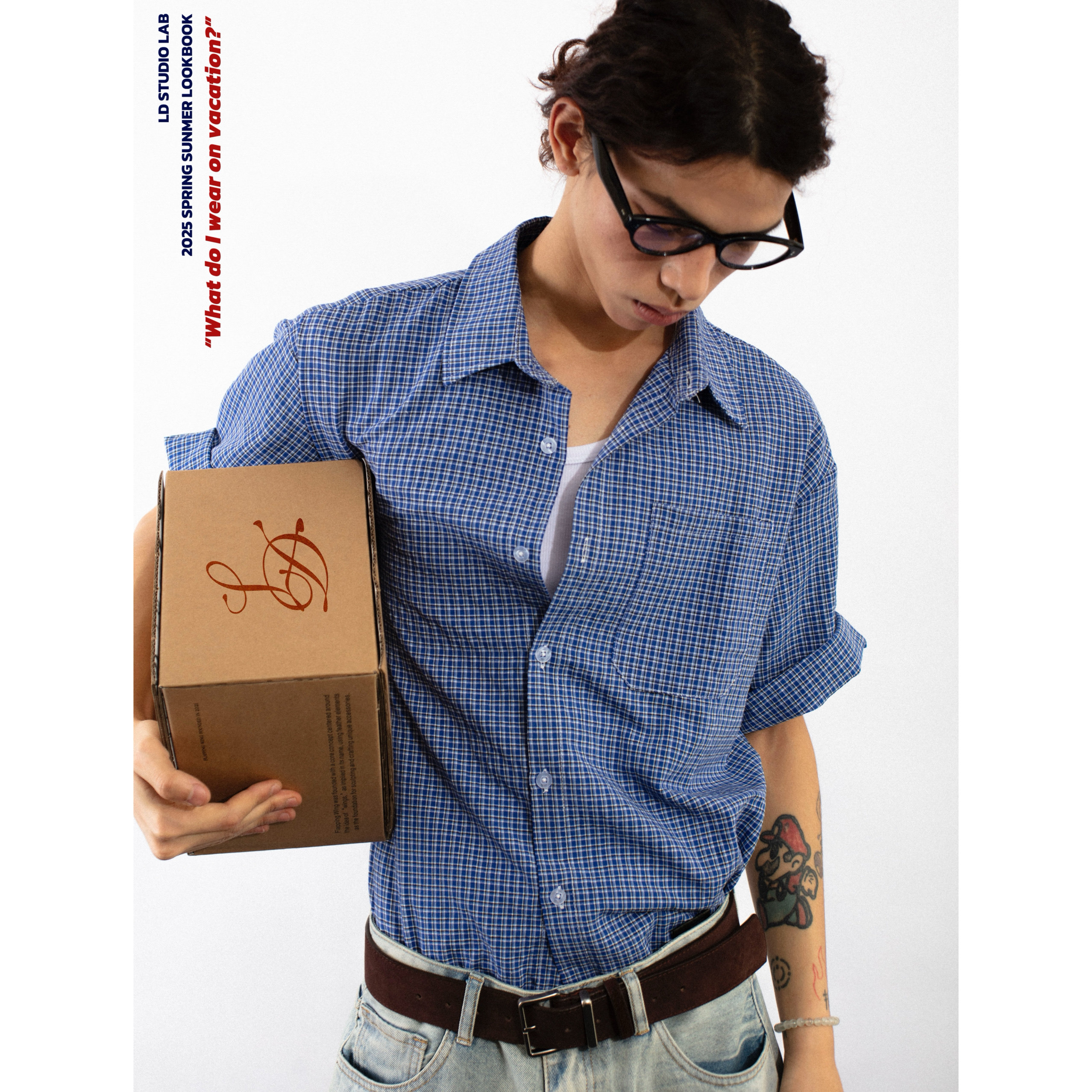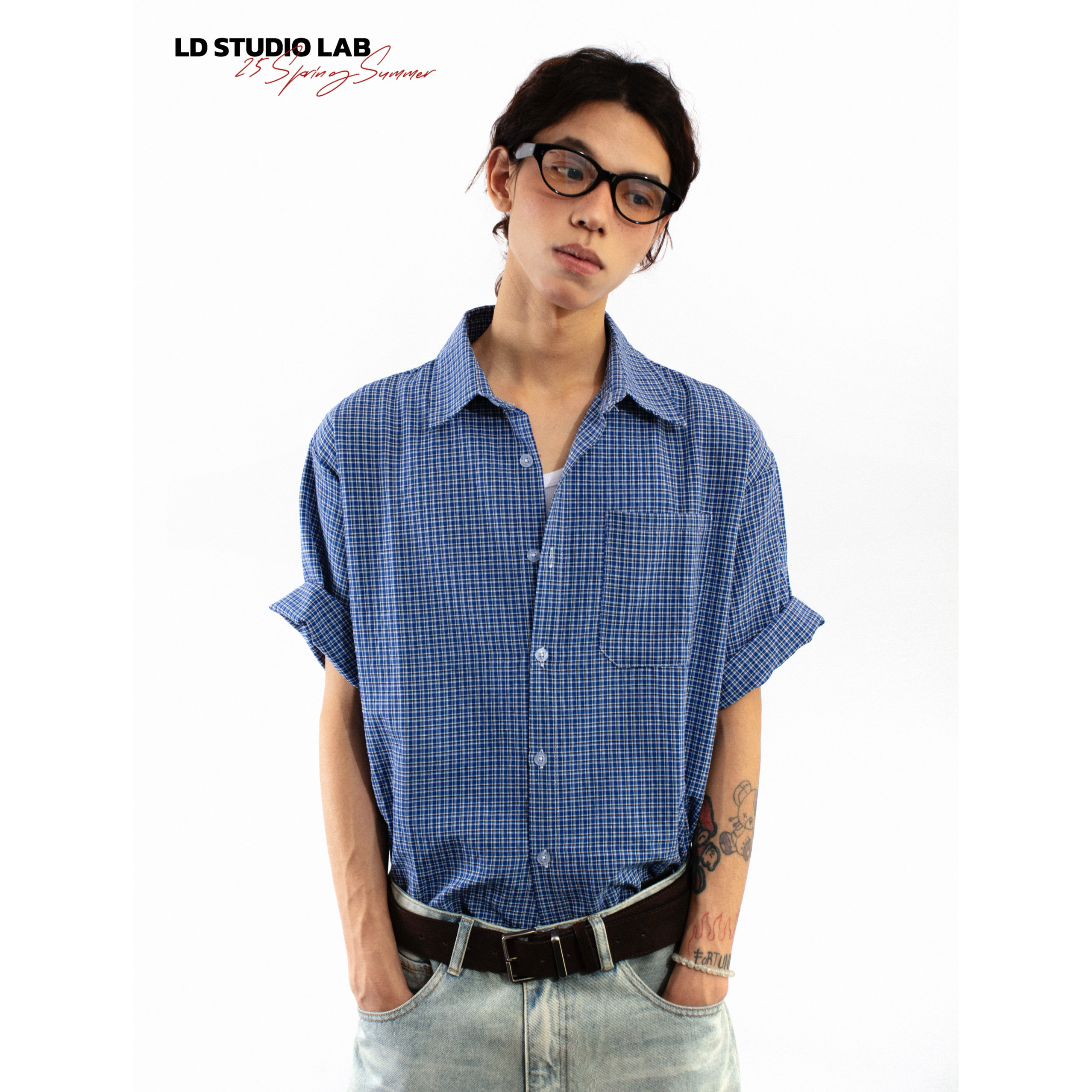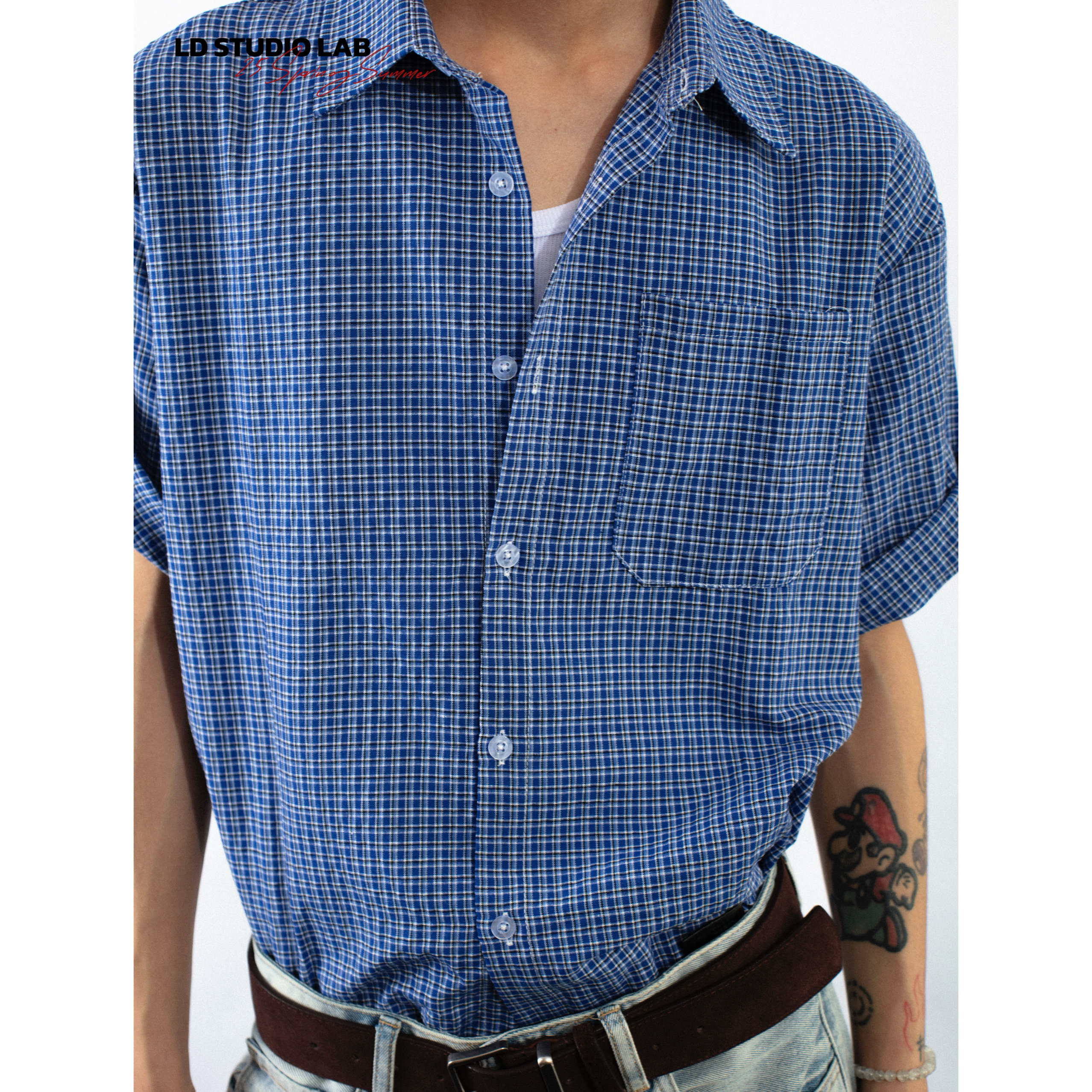 📚 LDSTUDIOLAB原创 日系复古基础百搭蓝格纹格子短袖中袖衬衫男女