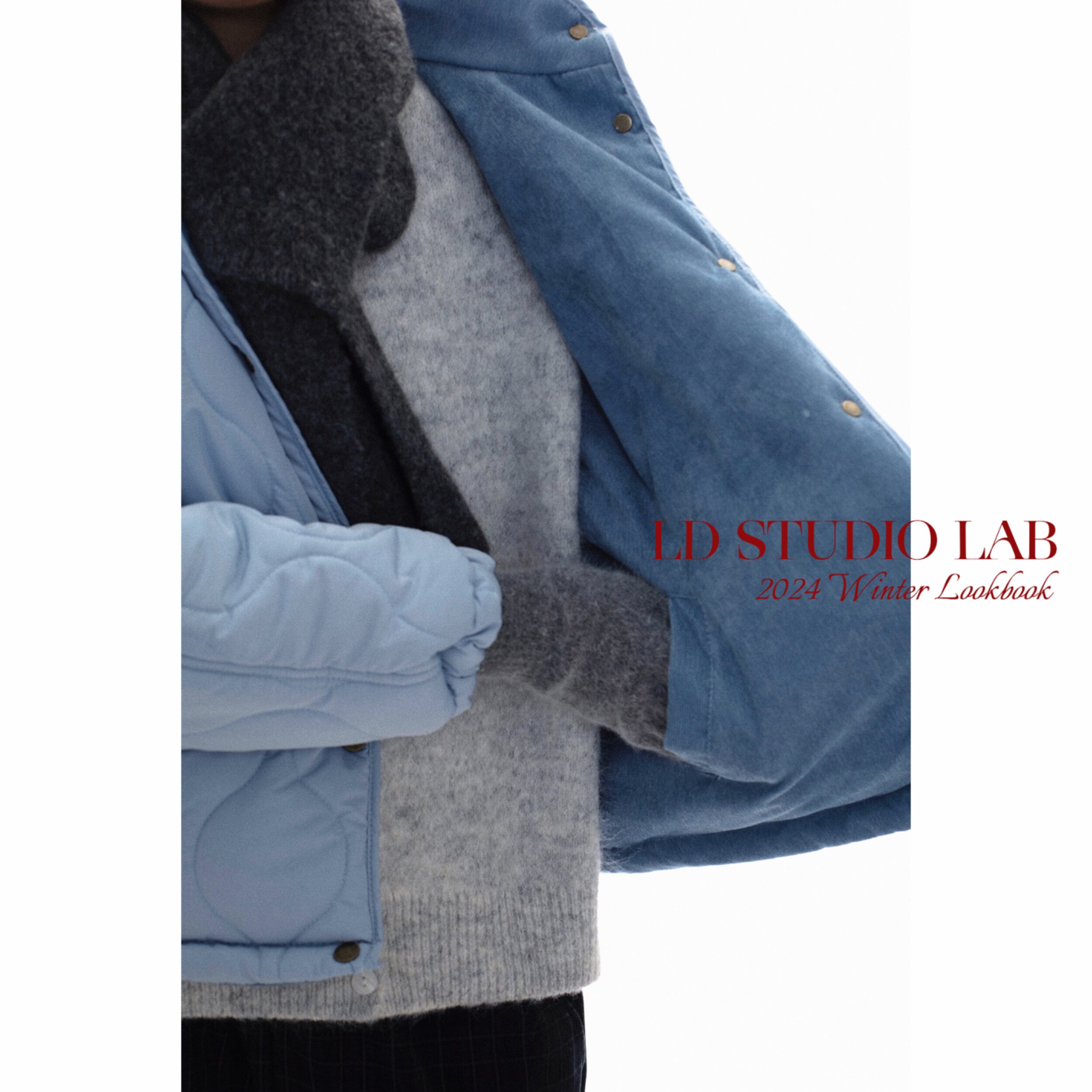 📚 LDSTUDIOLAB原创 日系复古雾霾蓝色双面穿灯芯绒夹棉夹克棉服外套