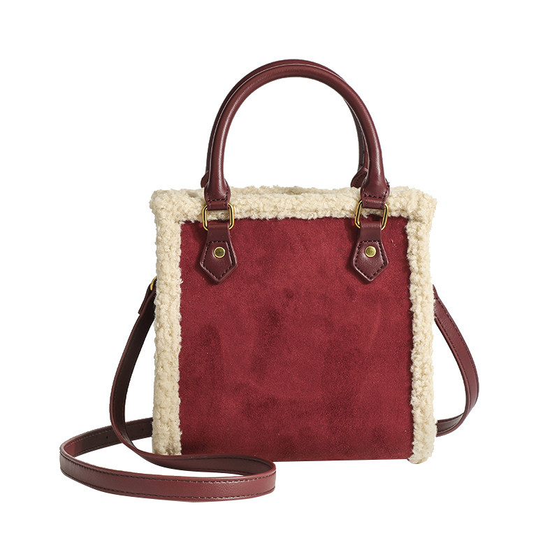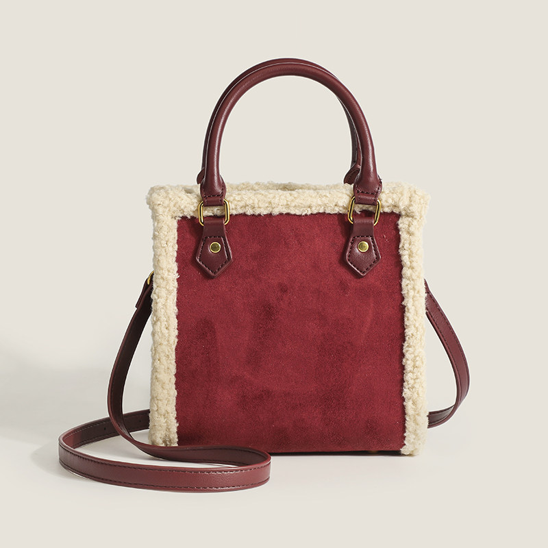 📚 UR包包女秋冬羊羔毛拼接麂皮绒毛毛包单肩斜挎小方包手提琴谱包