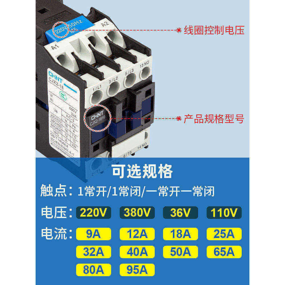 📚 正泰交流接触器CJX2-4011 5011 6511 8011 9511 220V 380V单三相