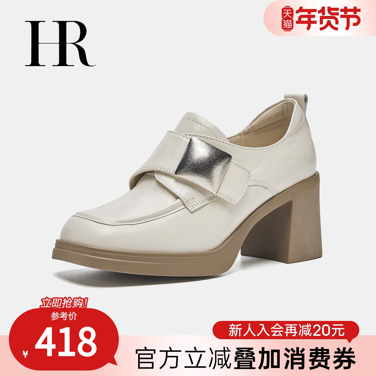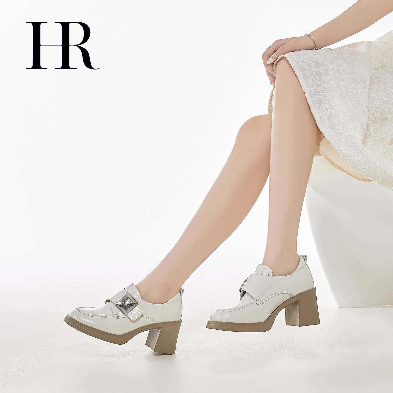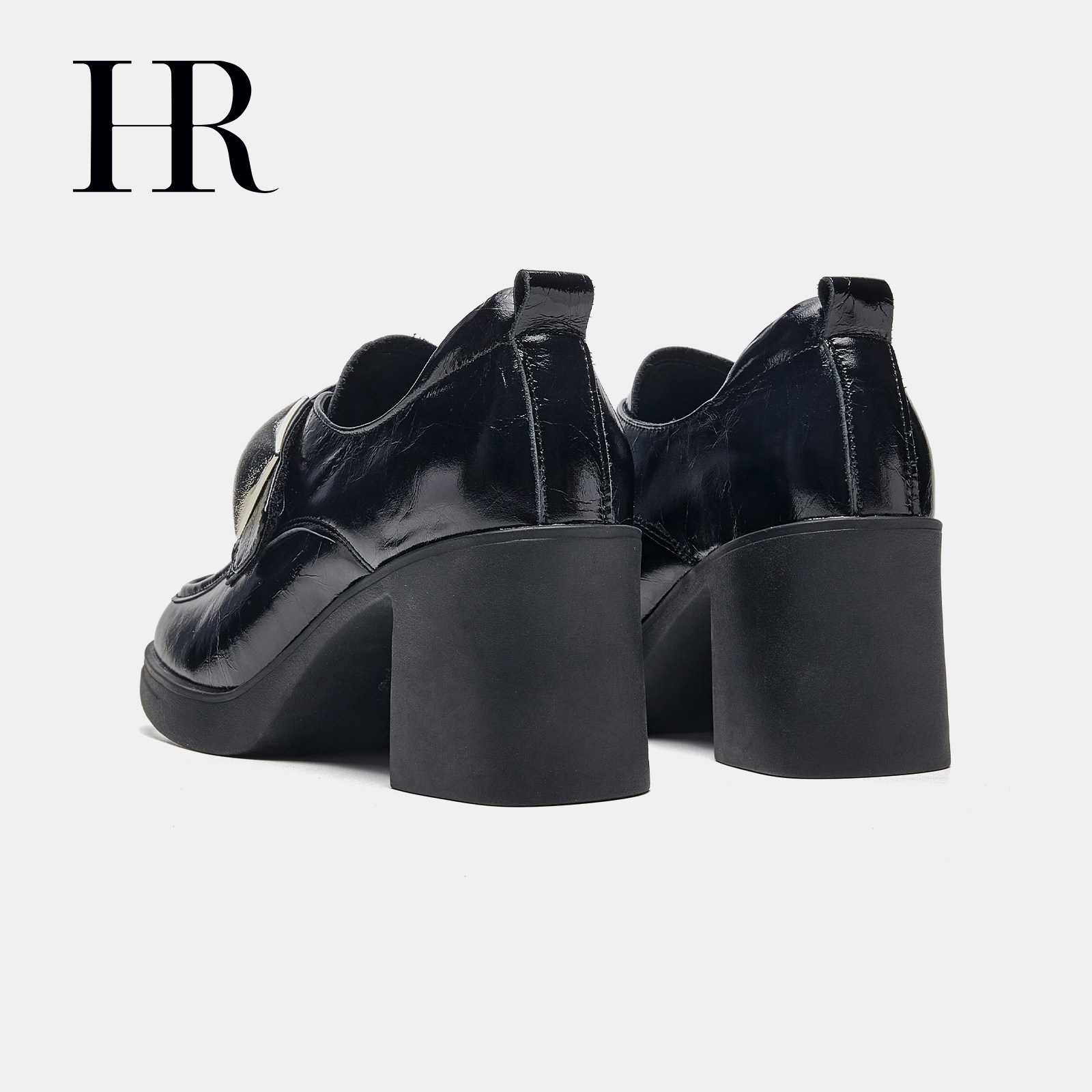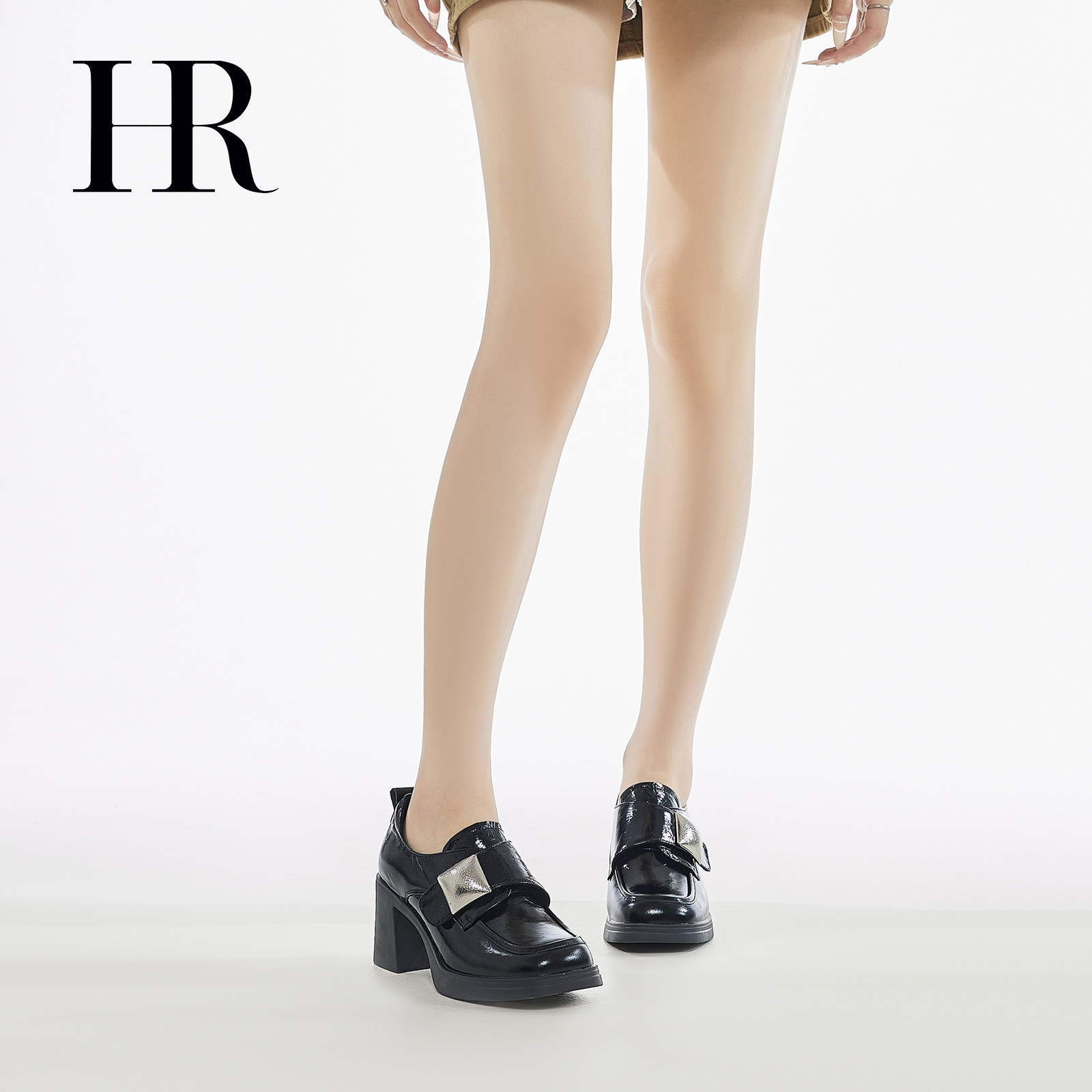 📚 HR赫莲娜女鞋子2026春季新款乐福鞋粗跟增高秀气百搭简约厚底英伦