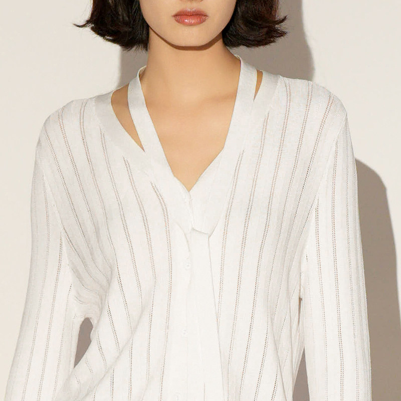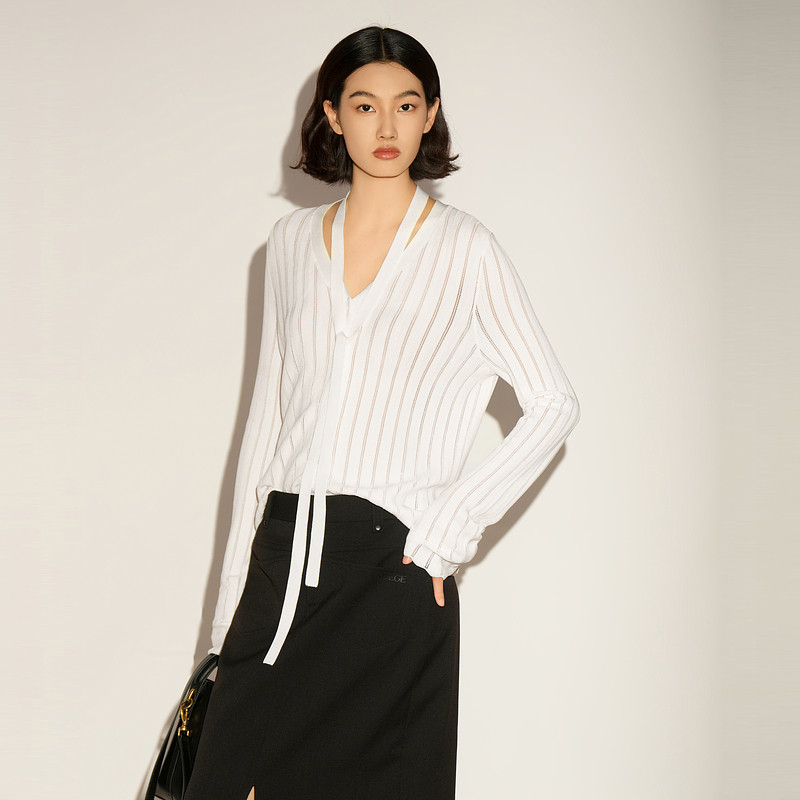 📚 XG/雪歌26春款白色飘带V领开衫女针织衫显瘦毛衫上衣XL111035A451