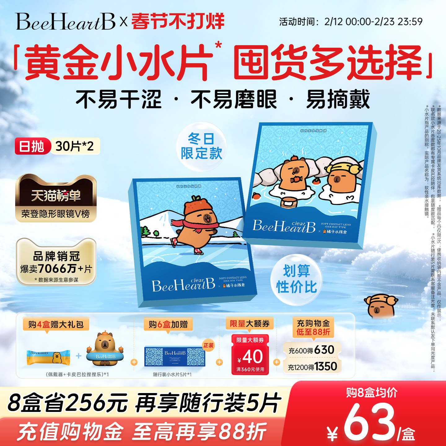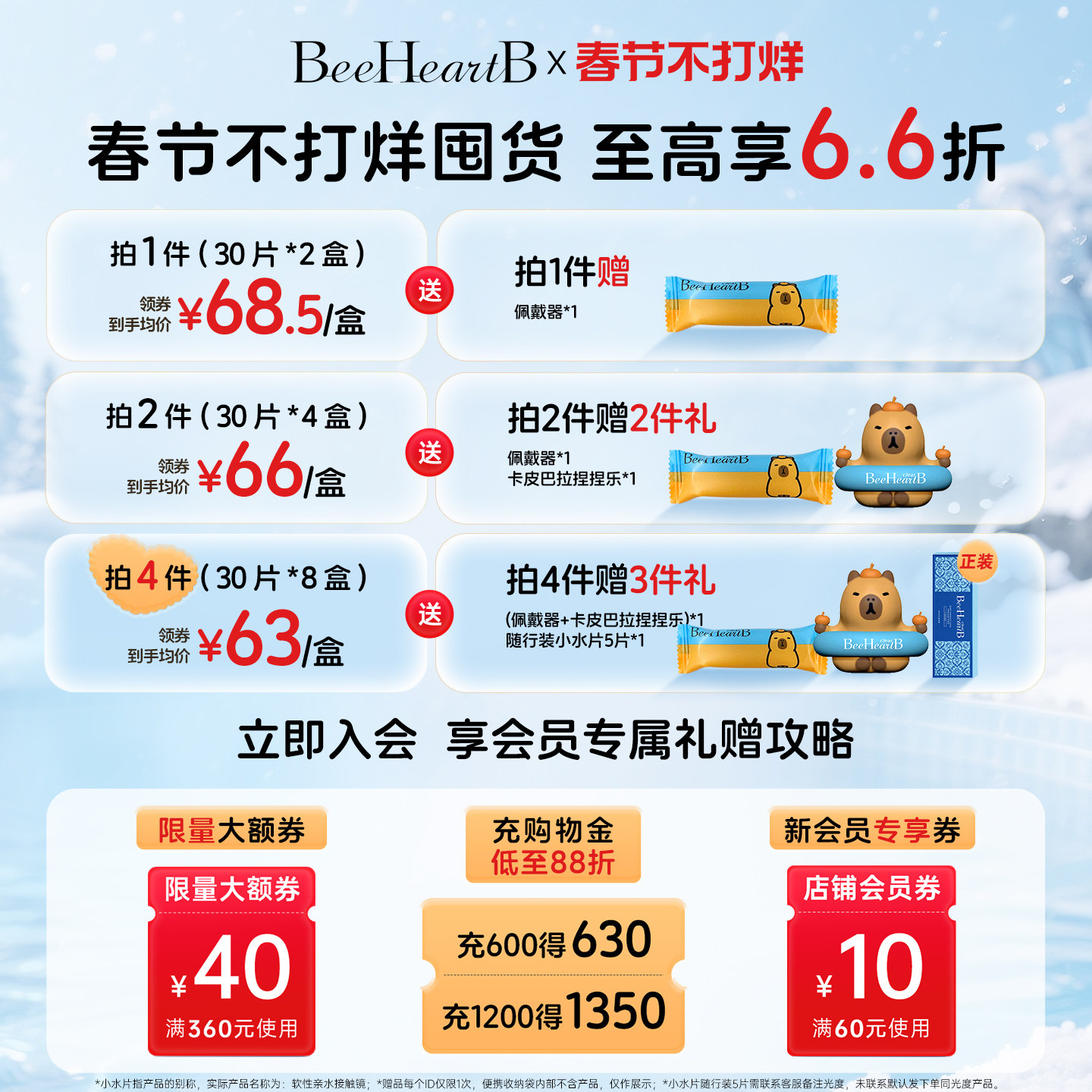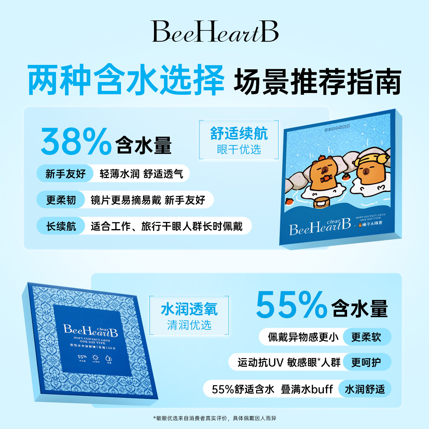 📚 【2盒囤货装】BeeHeartB日抛60片38%/55%含水隐形眼镜透明蜜心妍