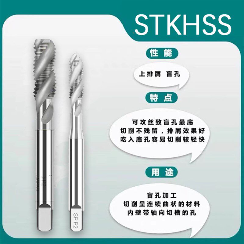 📚 STK HSS进口丝锥机用S P白色螺旋丝锥铜铁铝专用手用先端直槽丝攻