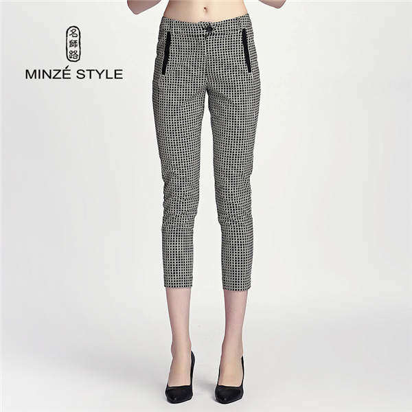 📚 名师路黑白格裤子女春季新款百搭通勤修身显瘦修身打底九分裤