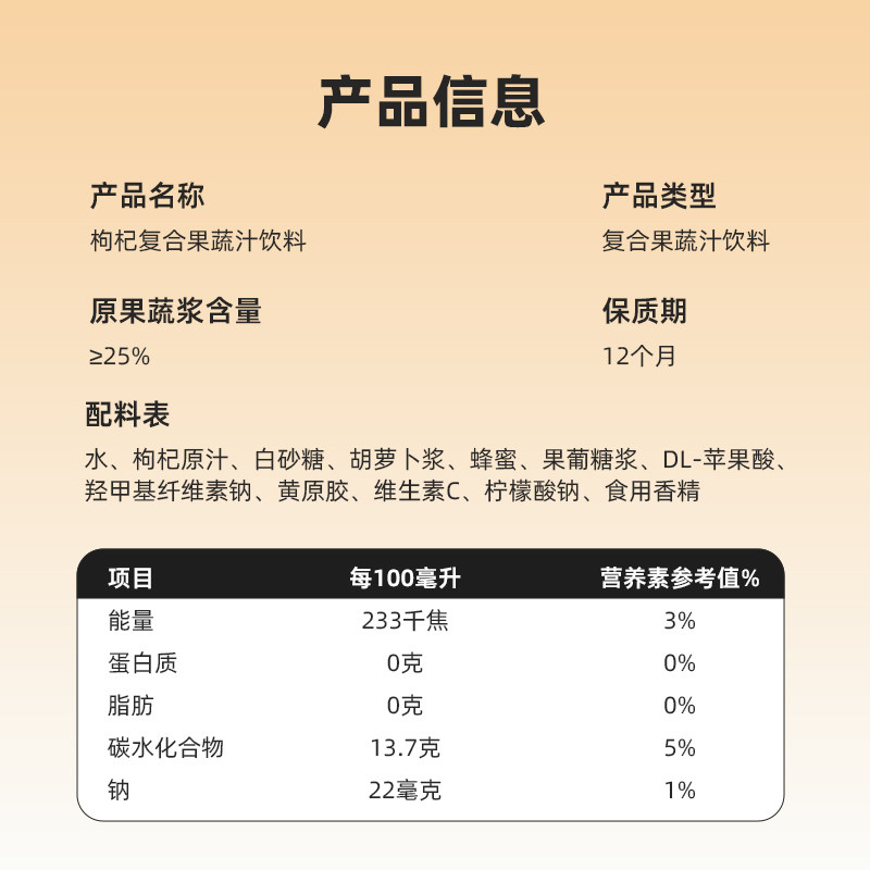 📚 神内枸杞原汁复合果蔬汁饮料新疆特产胡萝卜枸杞维C果汁绿色食品