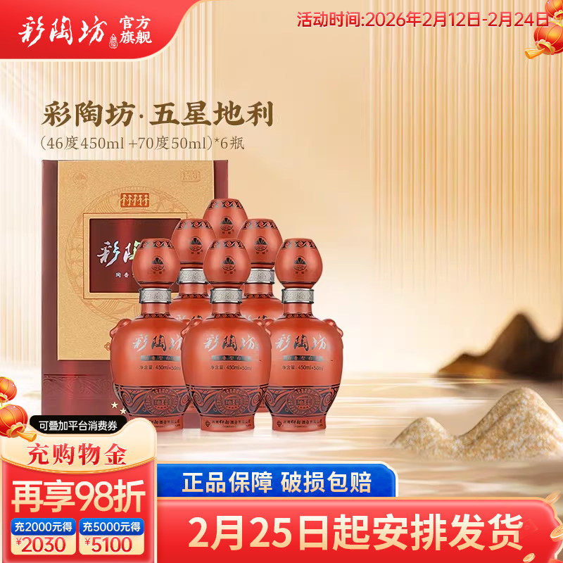 📚 仰韶彩陶坊五星地利 白酒整箱6瓶礼盒装46度450ml+70度50ml纯粮酒