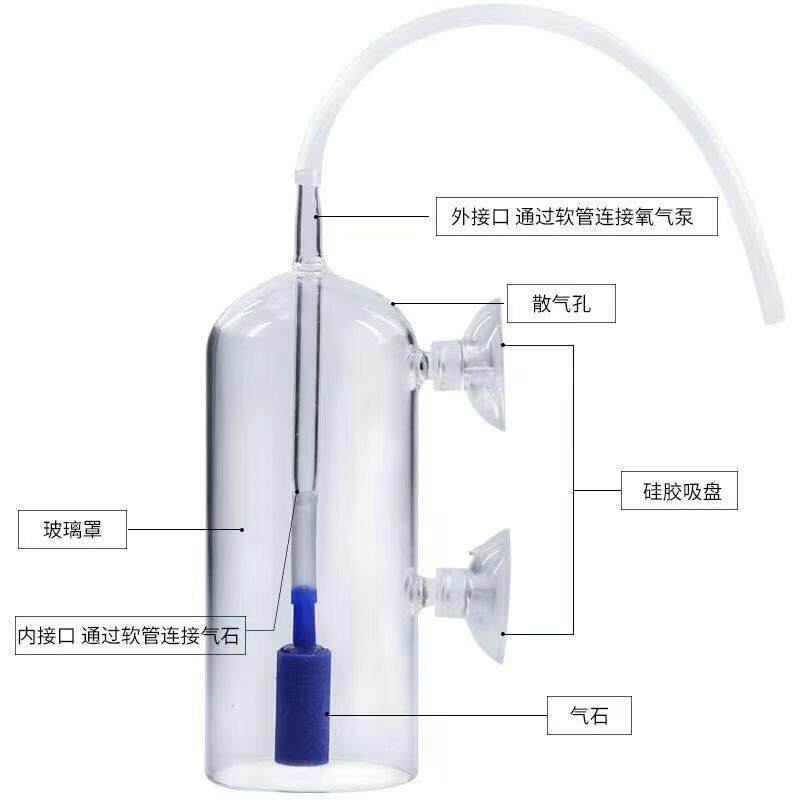 📚 水族箱水晶玻璃溶氧器防水沫飞溅鱼缸增氧氧气石水草缸虾缸容氧杯