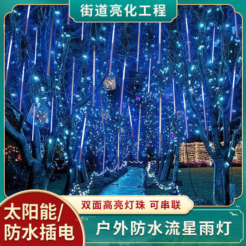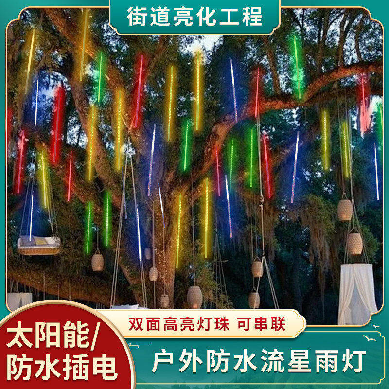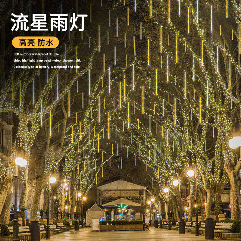 📚 户外防水流星雨灯led灯条装饰灯挂树新年彩灯闪灯串灯七彩氛围灯