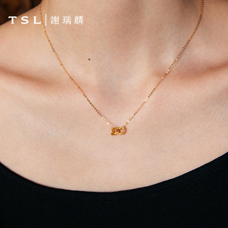 📚 情人节TSL谢瑞麟LOVE CIRCLE系列18K爱心双环项链彩金AG539