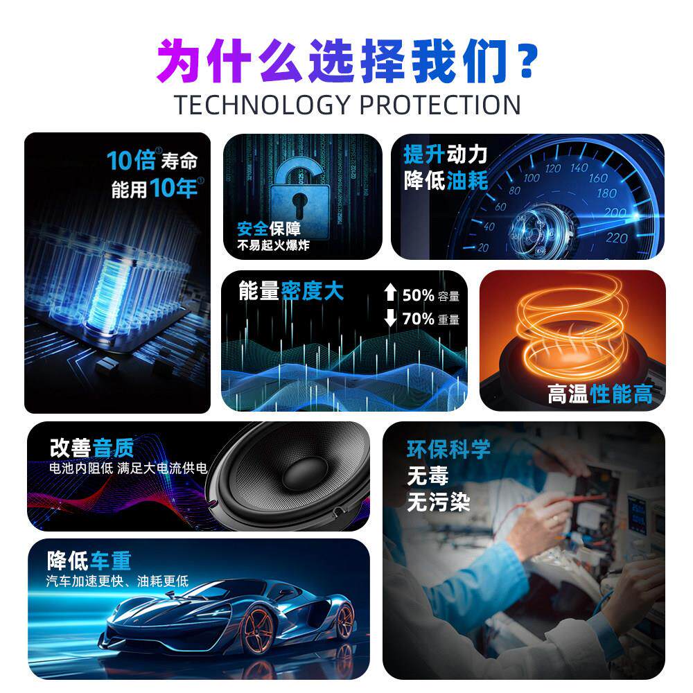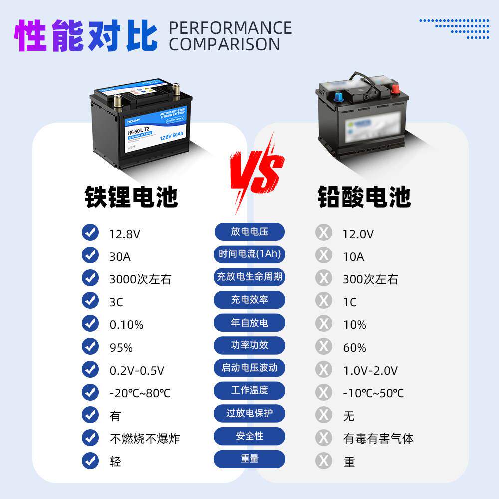 📚 houny弘毅12v磷酸铁锂汽车电池大容量轿车启动蓄电池AGM80锂电瓶