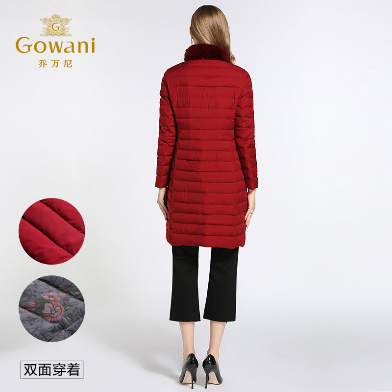 📚 乔万尼羽绒服女商场新款水貂毛红色收腰A版两面穿中年女士中长款