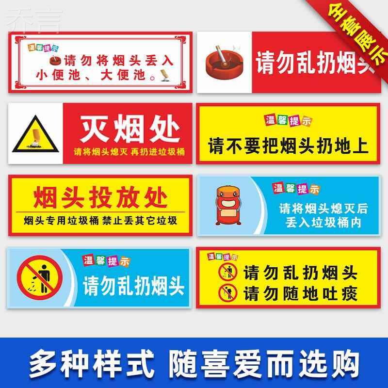 📚 请勿乱扔烟头温馨提示牌贴纸 禁止乱丢垃圾烟蒂严禁随地吐痰警示牌 灭烟处请将烟头熄灭后仍入垃圾桶内标识牌