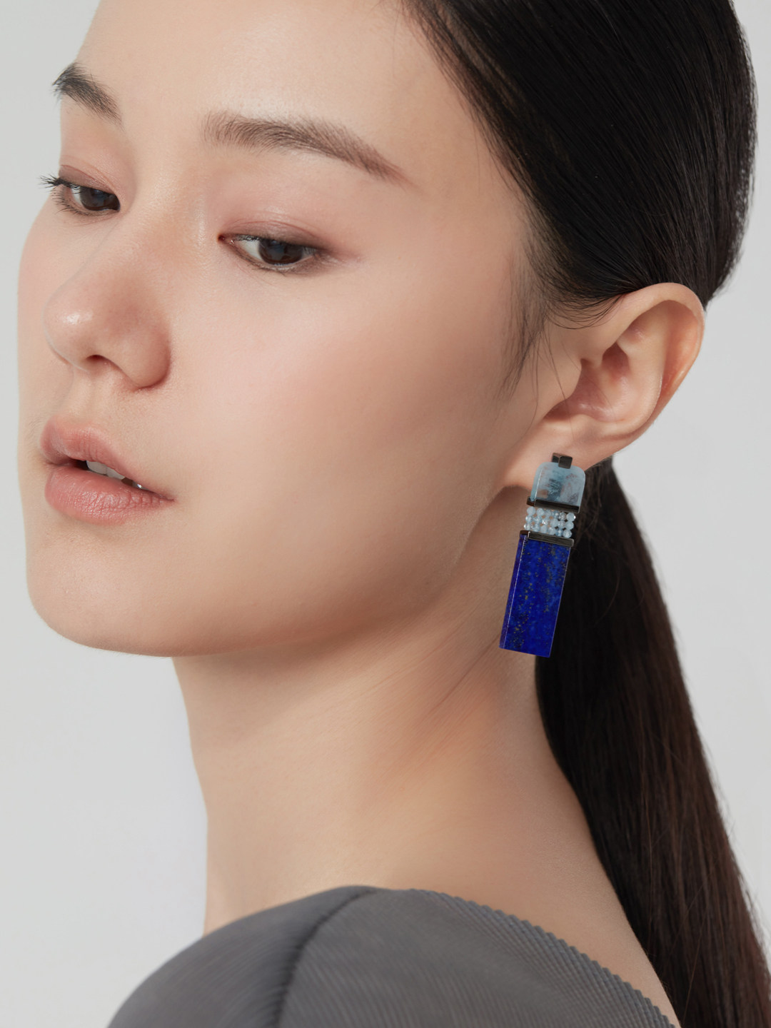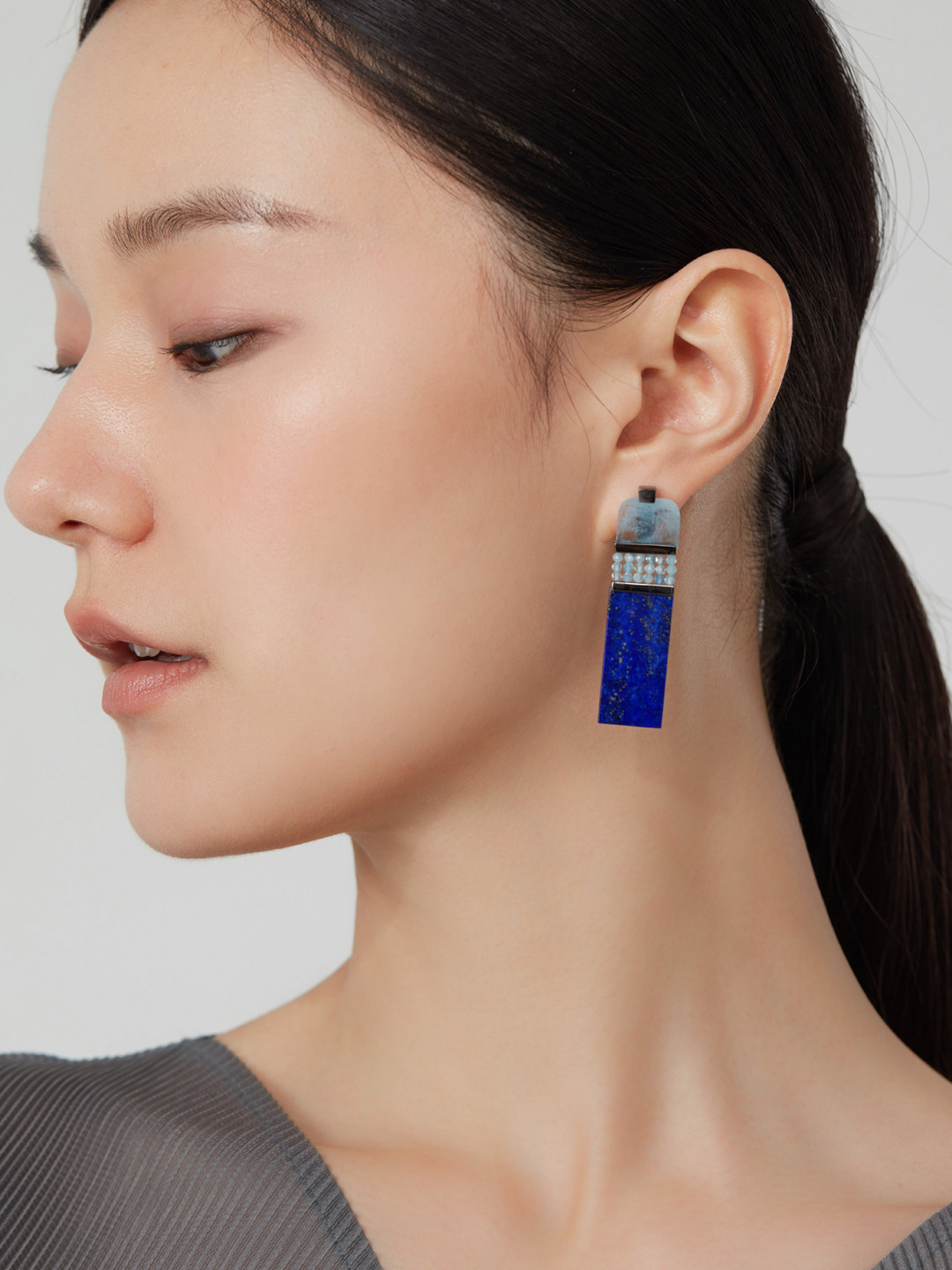 📚 朗睦原创天然青金石海蓝宝新中式耳环套装简约小众独特戒指设计感