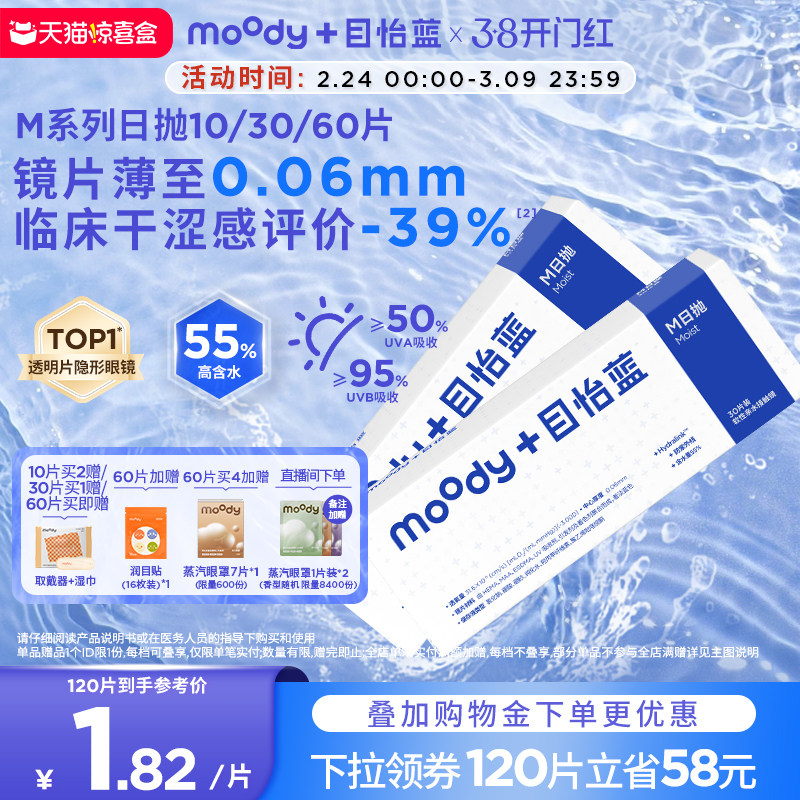 📚 moody隐形眼镜日抛M系列透明片近视眼镜10/30/60片moodyblue专享