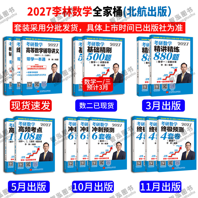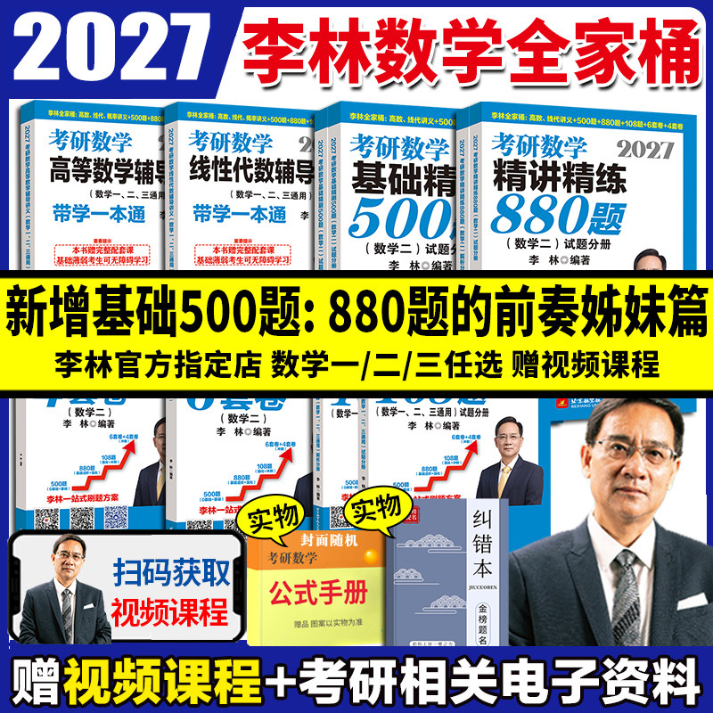 📚 李林2027考研数学精讲精练880题基础500题六套卷+四套卷108题27高等数学辅导讲义线性代数概率论考研数学一数二数三2026李林6+4