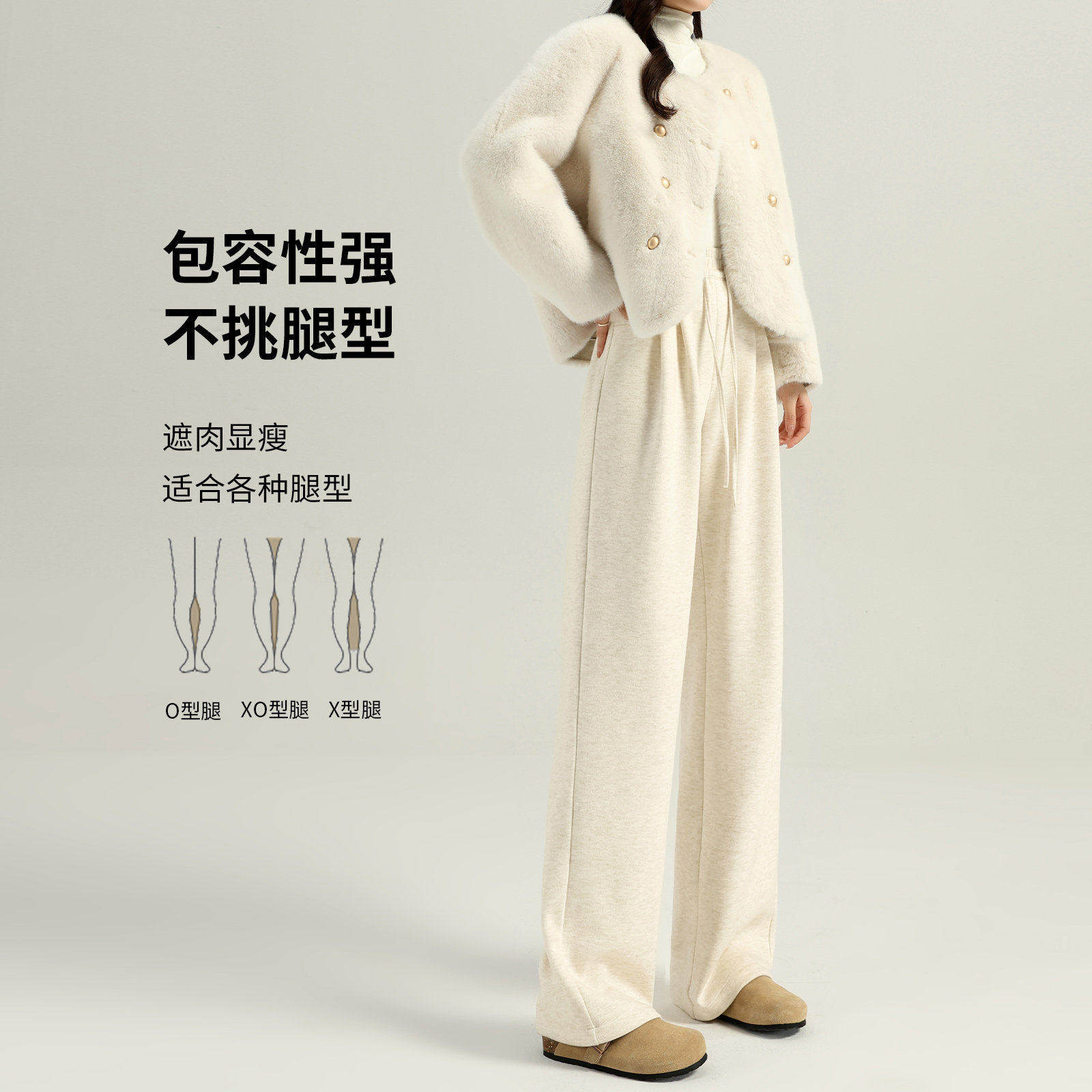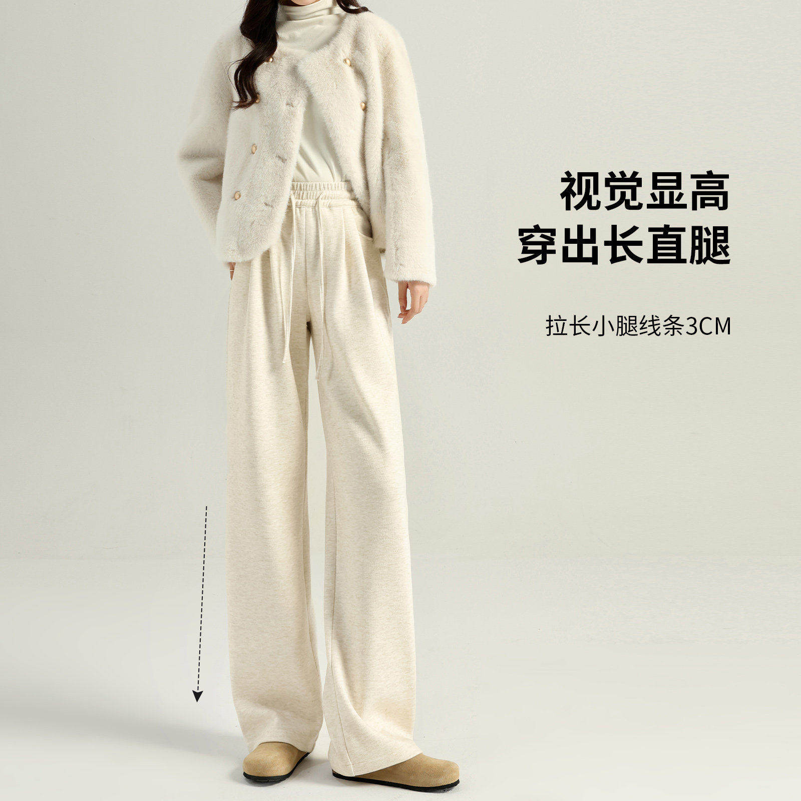 📚 糯米裤女秋冬2025新款白色休闲高腰显瘦垂感软糯窄版阔腿裤子