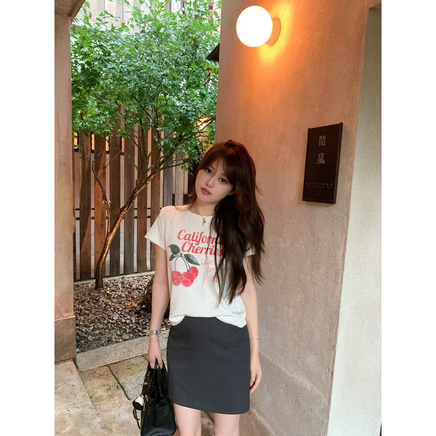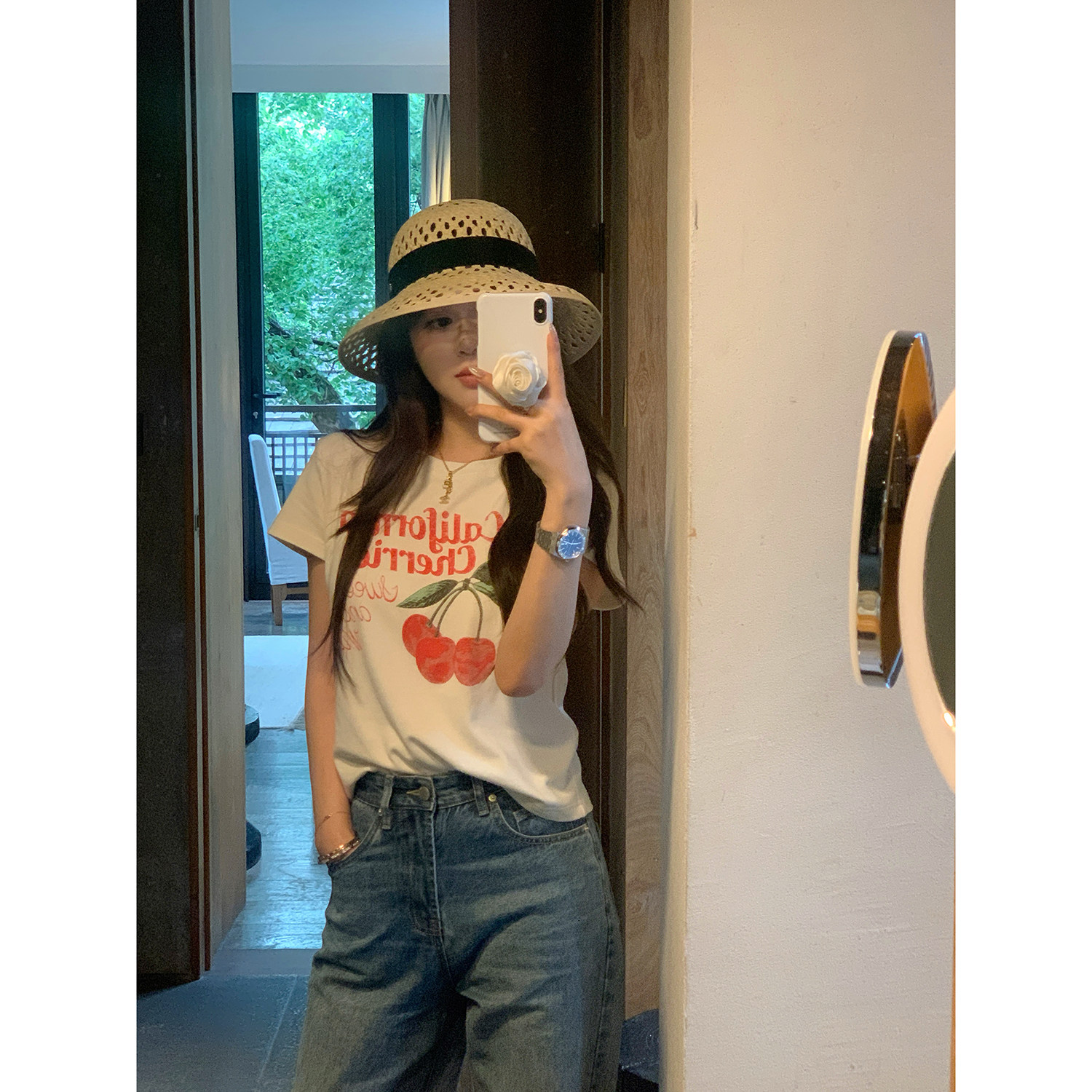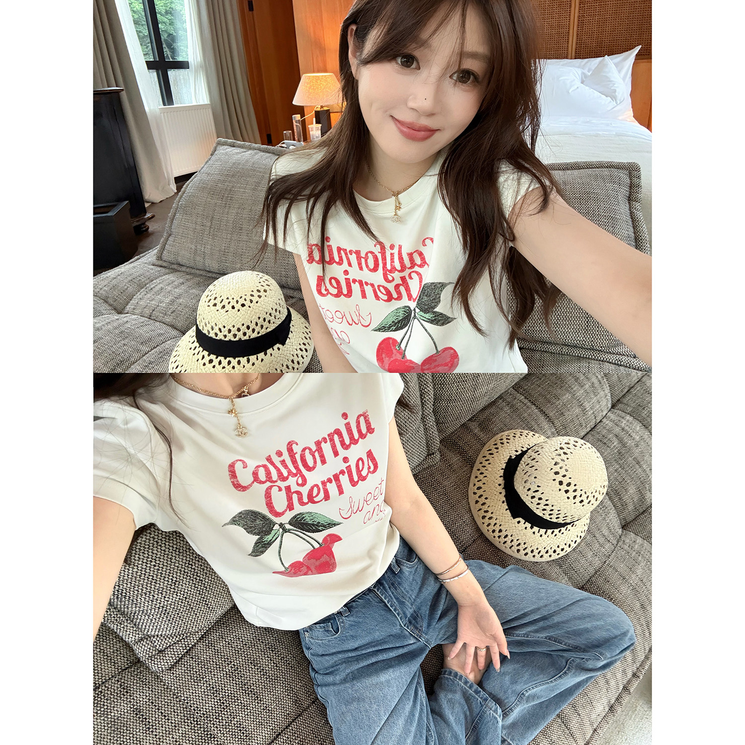 📚 AHY 复古甜心经典正肩抗皱高弹做旧水印印花短袖T恤女新品