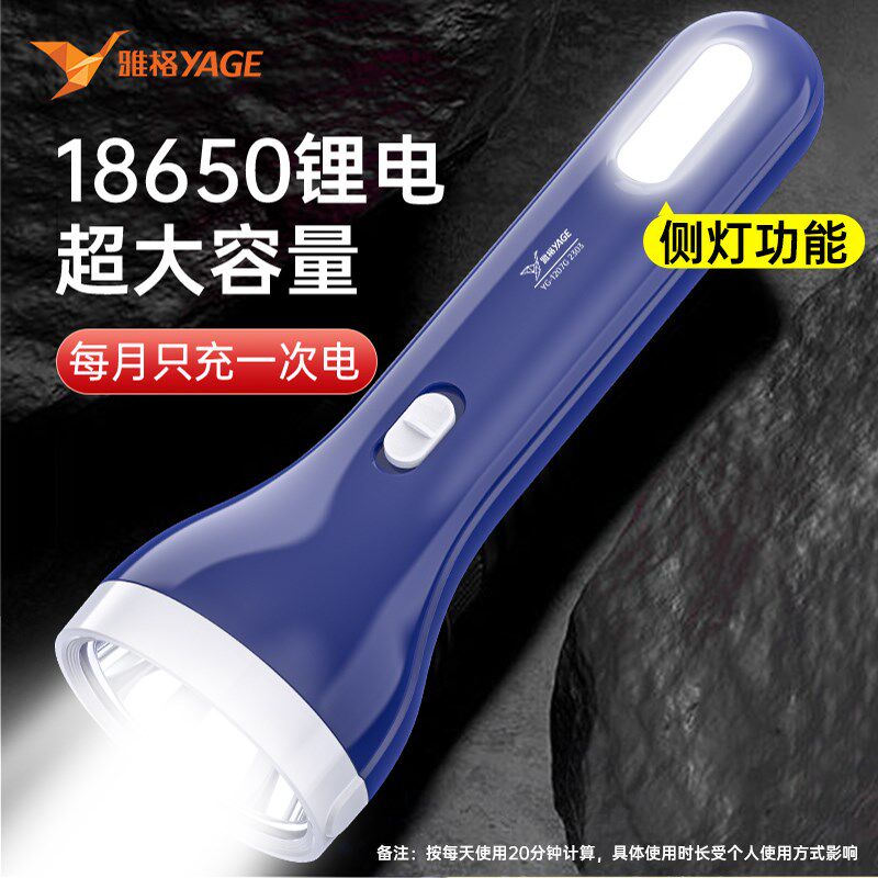 📚 雅格家用手电筒充电式耐用强光农村夜路照明老年人用停电应急便携