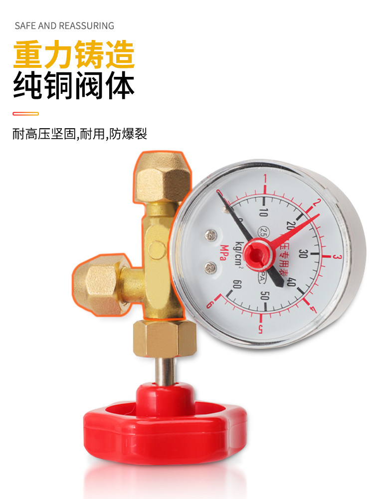 📚 多联机空调冰箱压力表氮气保压表60kg打压表6.0Mpa公英制接三通阀