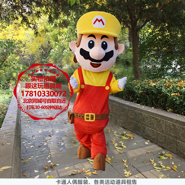 📚 北京出租黄白色超级玛丽马里奥成人行走卡通人偶服装玩偶活动道具