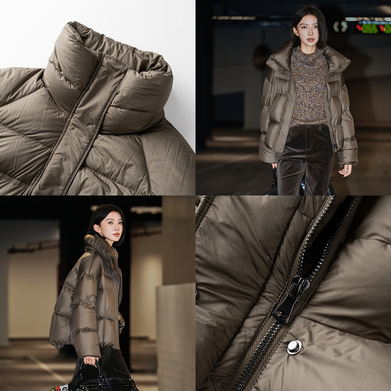 📚 XG雪歌军绿色短款鹅绒羽绒服2025冬季新款厚款长袖面包服外套女装