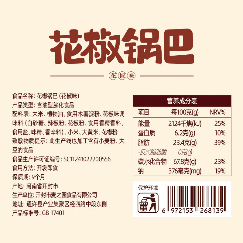 📚 刺猬阿甘花椒锅巴220g*2袋椒香微辣酥脆米香谷物浓郁春游踏青零食