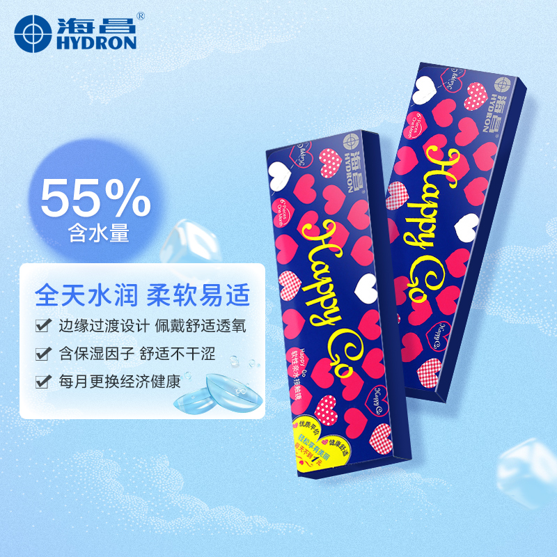 📚 海昌happygo月抛6片隐形近视眼镜水润舒适透明片高含水量