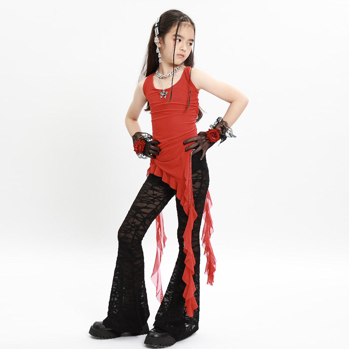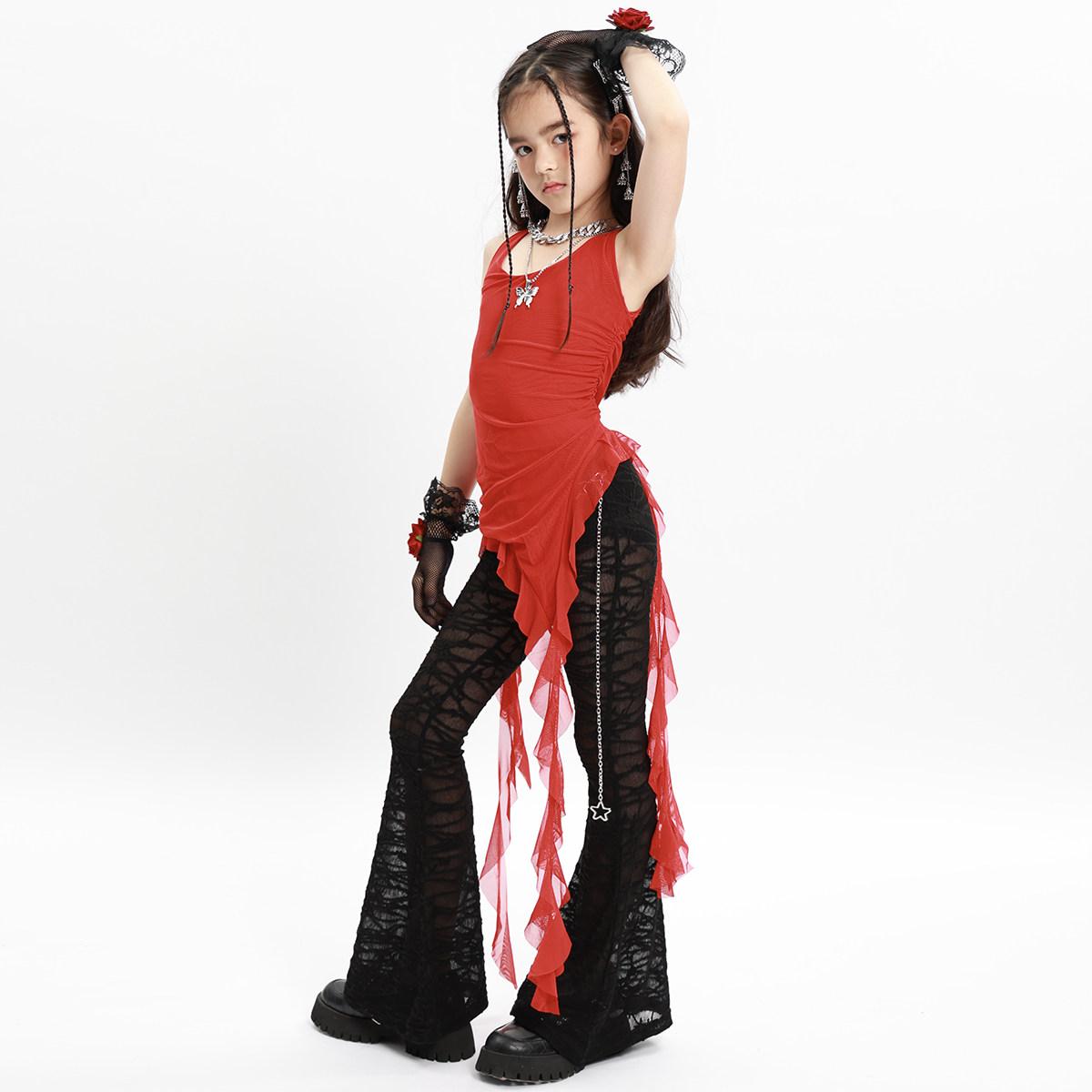 📚 街舞女童爵士舞jazz儿童喇叭裤套装潮服夏季女团少儿表演套装新款