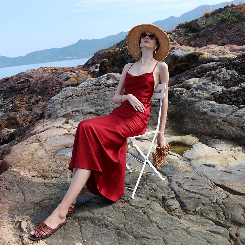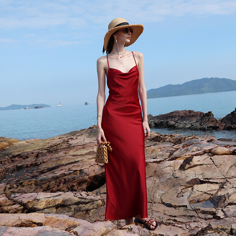 📚 海边大露背独特漂亮红裙海岛轻奢绝美度假穿搭约会高级感性感礼服