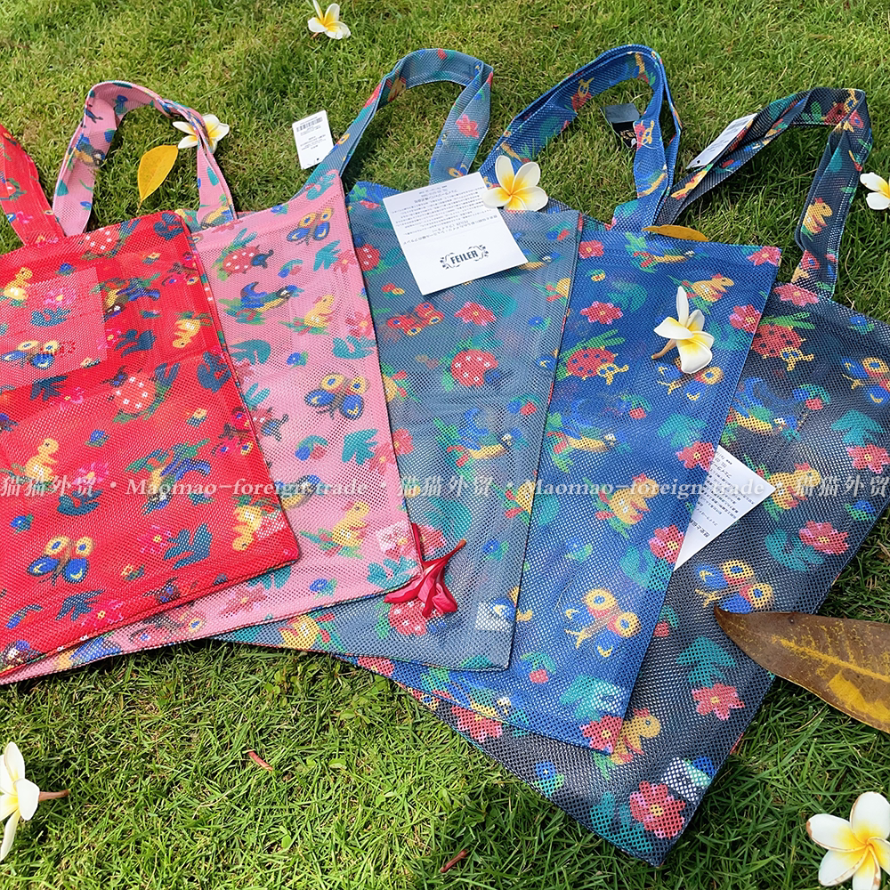 📚 出口日本feiler鸭子瓢虫蝴蝶印花网纱托特单肩包购物袋收纳环保袋