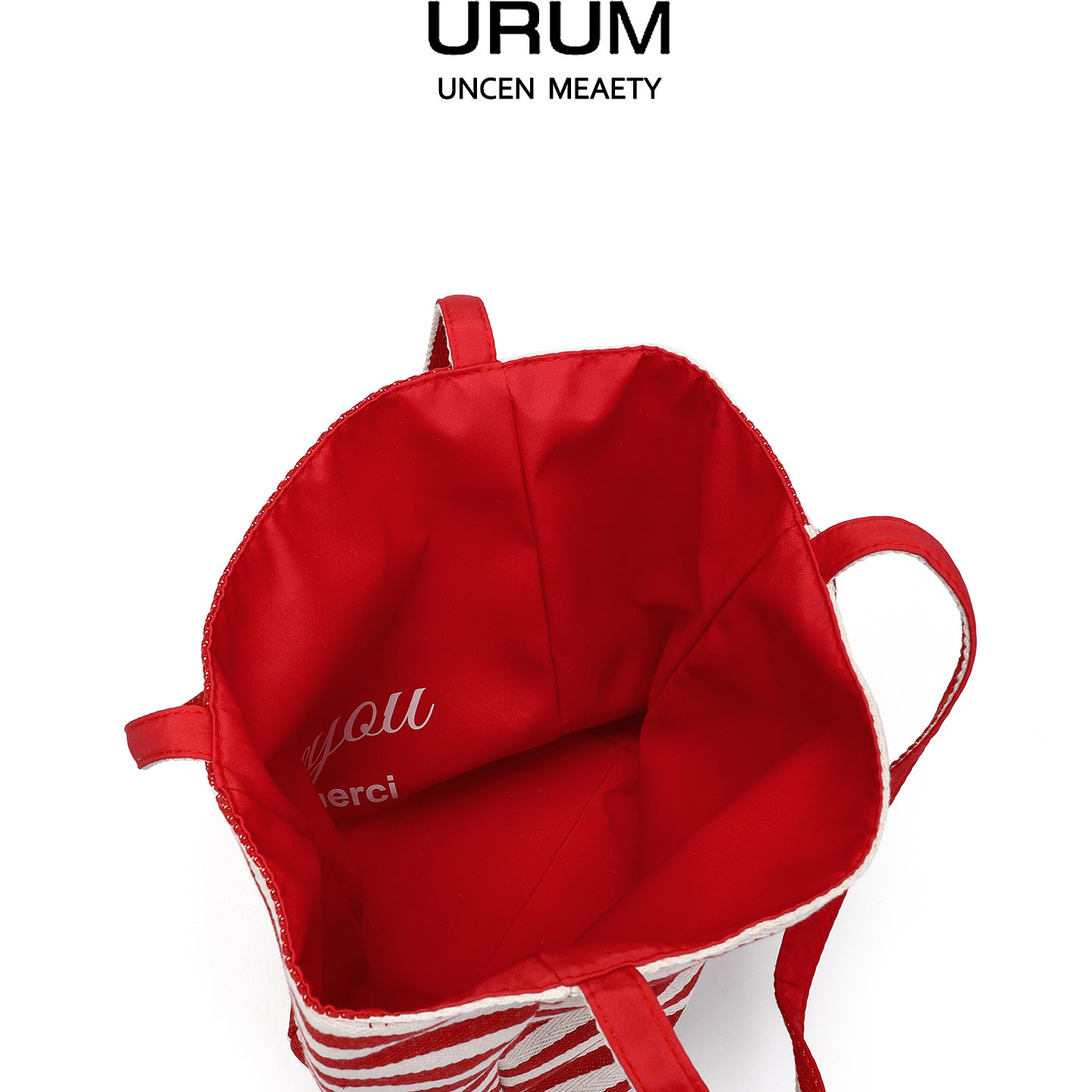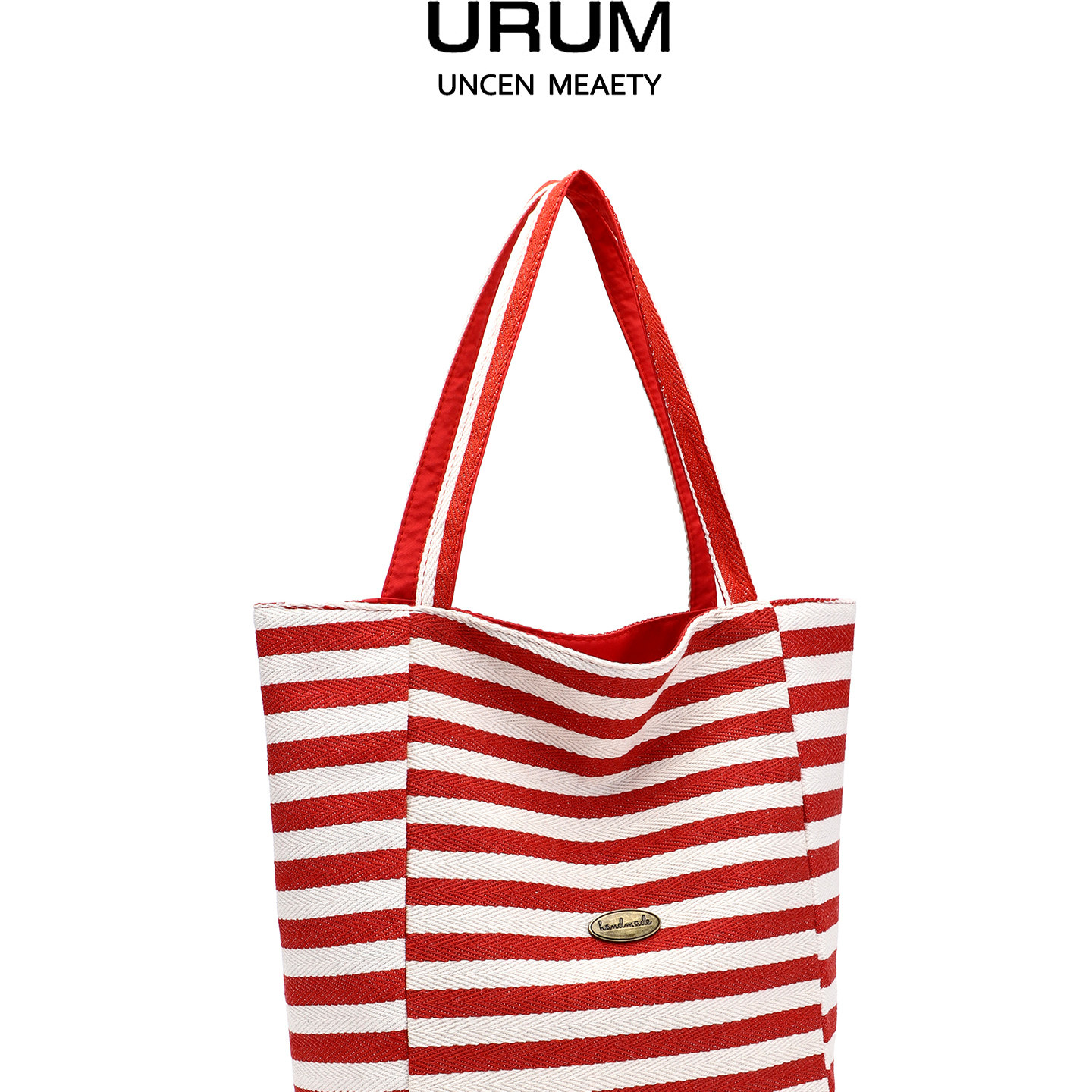 📚 URUM红色双面背条纹帆布包女2025新款慵懒风通勤单肩大容量托特包