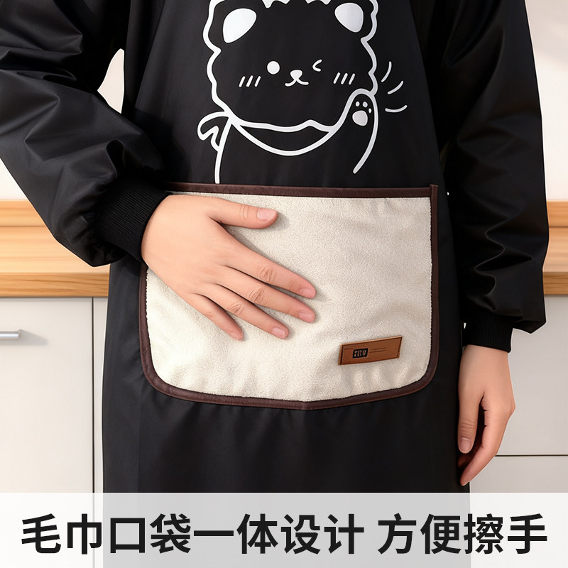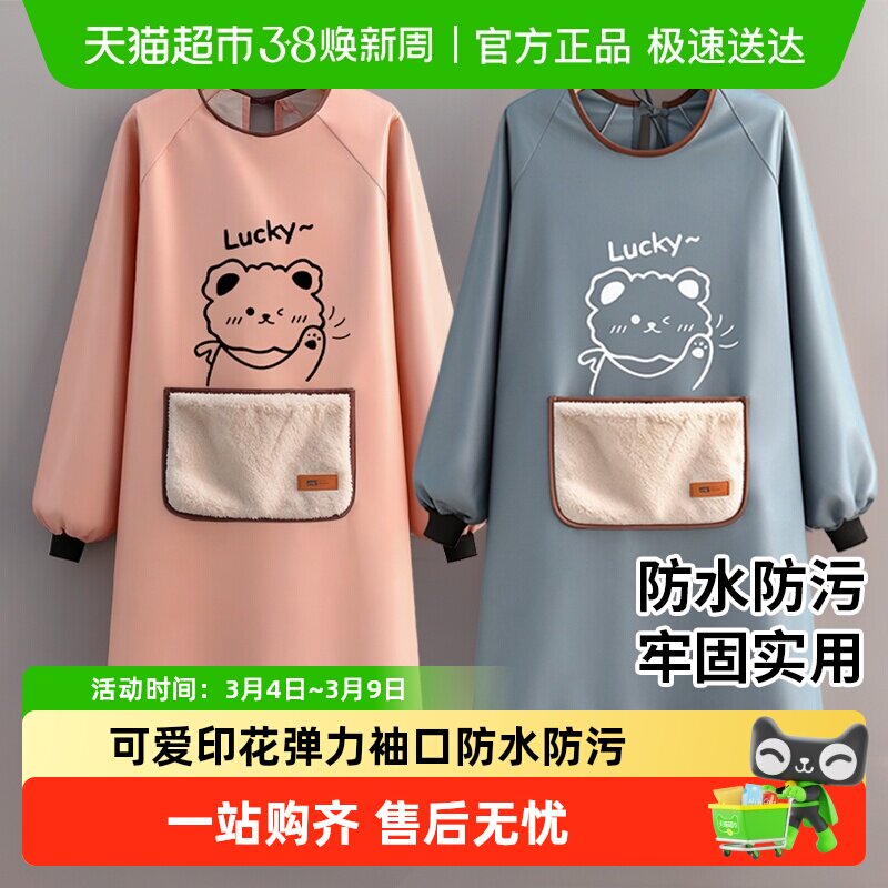 📚 新款家用小熊围裙可擦手秋冬罩衣家务厨房防水防脏污衣服餐饮服