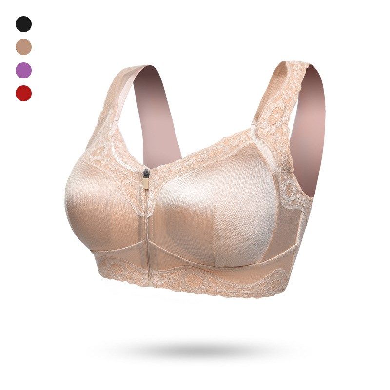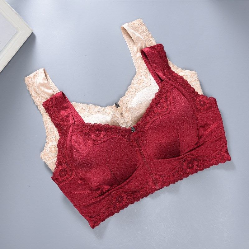 📚 胸罩前面带拉链的内衣前开扣子成人文胸大胸显小聚拢无钢圈中老年
